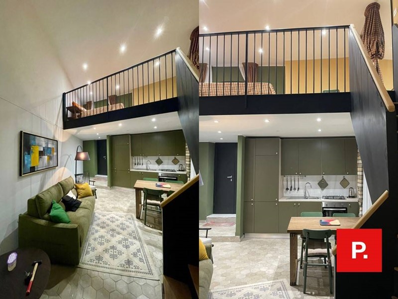 L'appartamento è composto da salone con cucina a vista, due camere da letto e un sevizio.