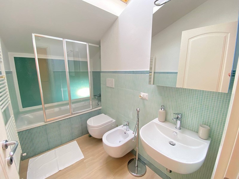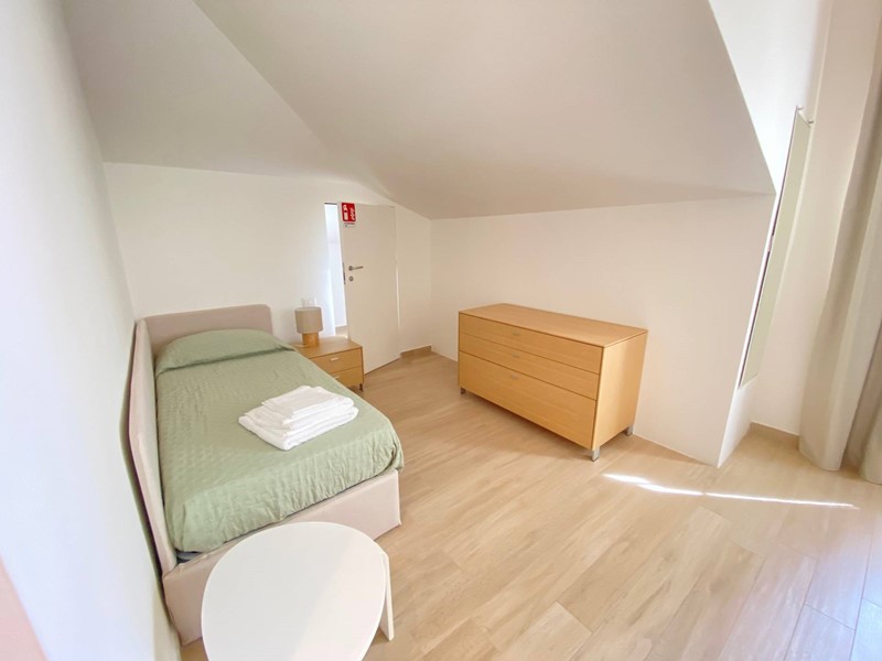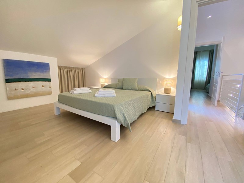 Piano primo due camere una con letto matrimoniale e una con due letti singoli, due bagni uno con vasca e uno con doccia, due balconi.
