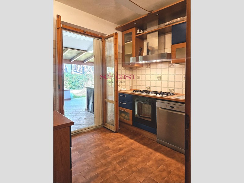 Ampia veranda di circa 80 mq., gazebo nel giardino e posto auto nel parcheggio condominiale. Libero subito.