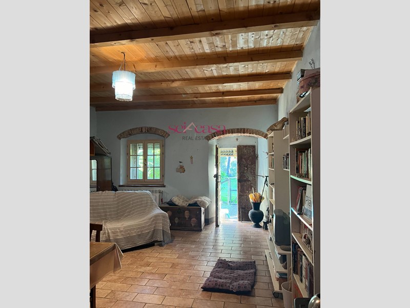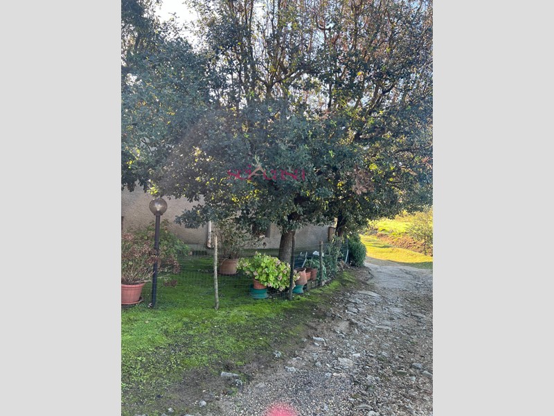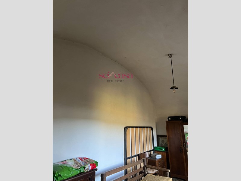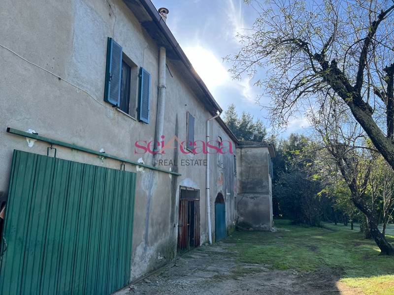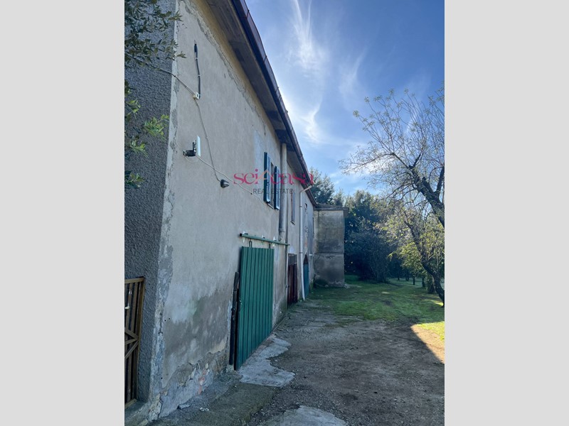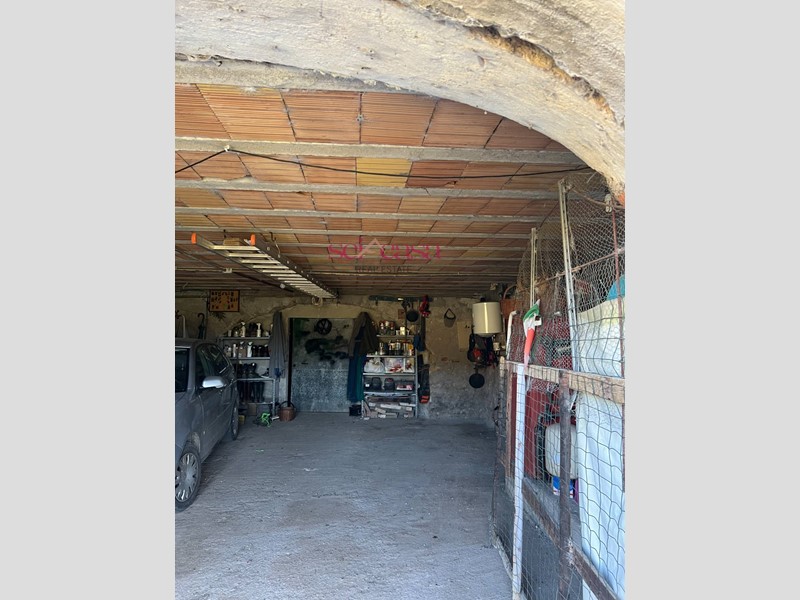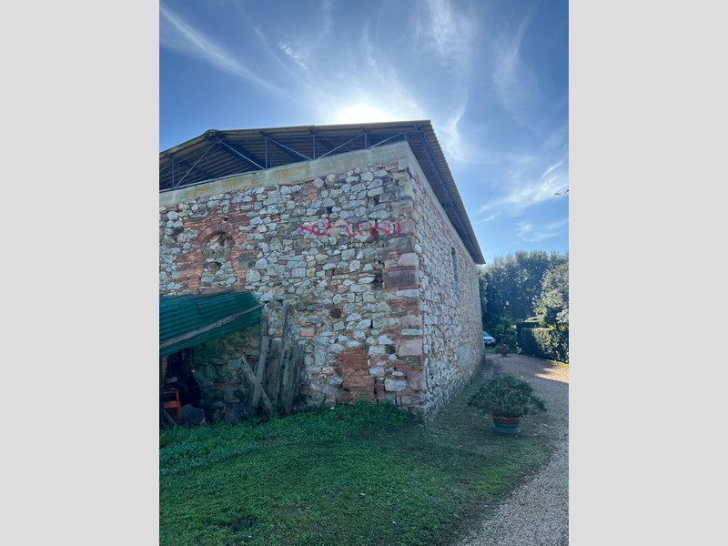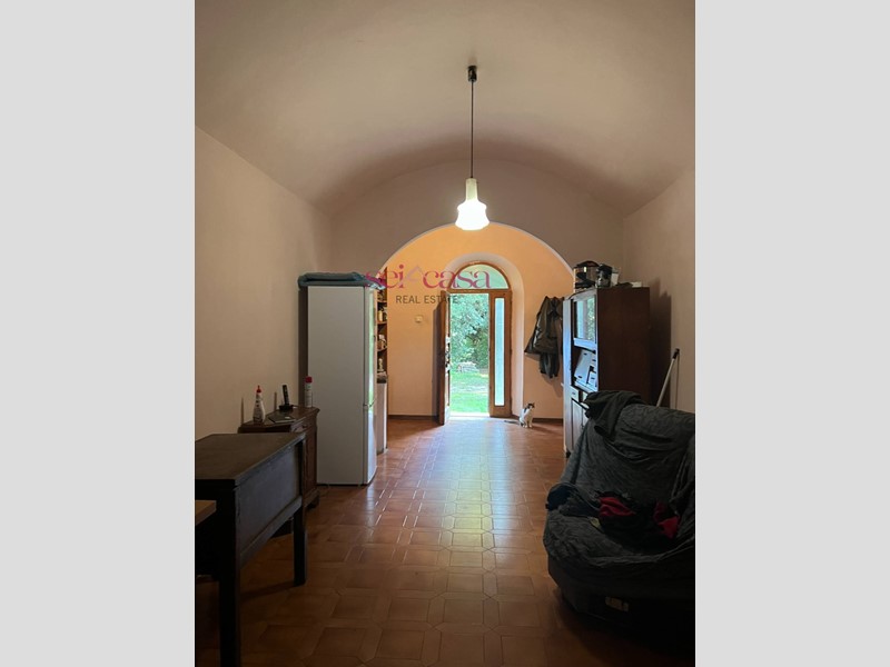 Sottostante ogni appartamento si trovano i garages e le cantine. Inoltre nella proprietà trovano posto una stalla, un fienile ed un capannone che in origine era una chiesa e presenta in alcune pareti piccole parti affrescate ma intonacate. I fabbricati sono circondati da terreno adibito a giardino, a passaggi e piazzali di manovra. La proprietà è da ristrutturare e dispone di ha 33 di terreno seminativo.
