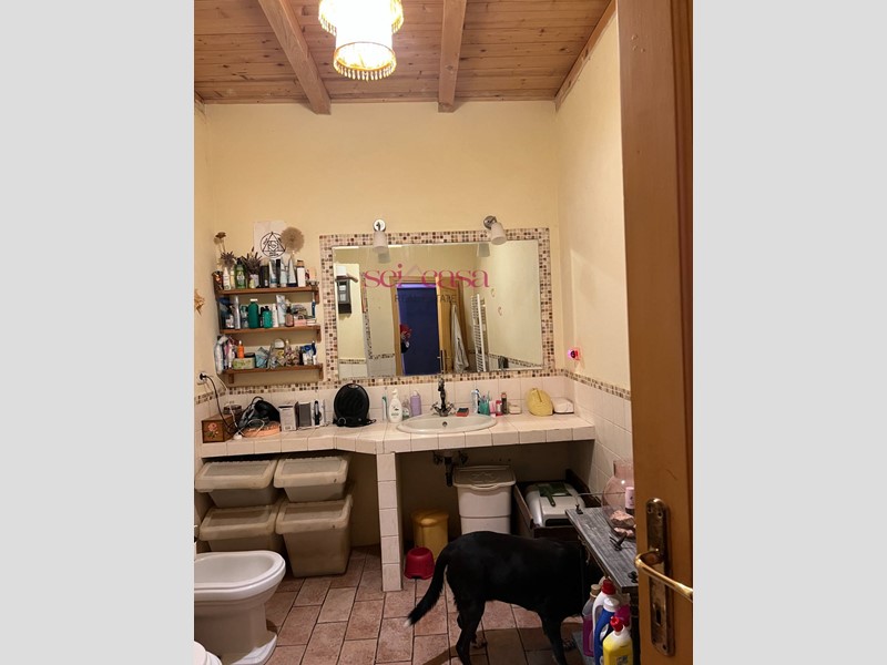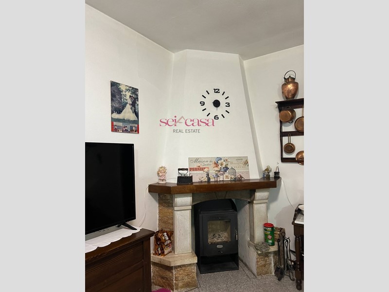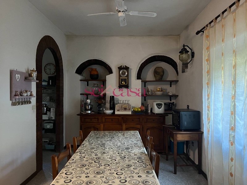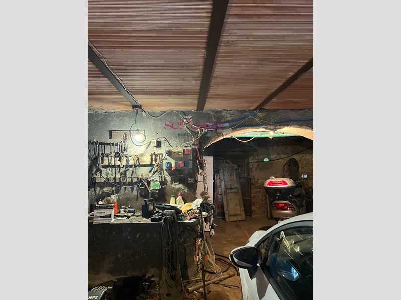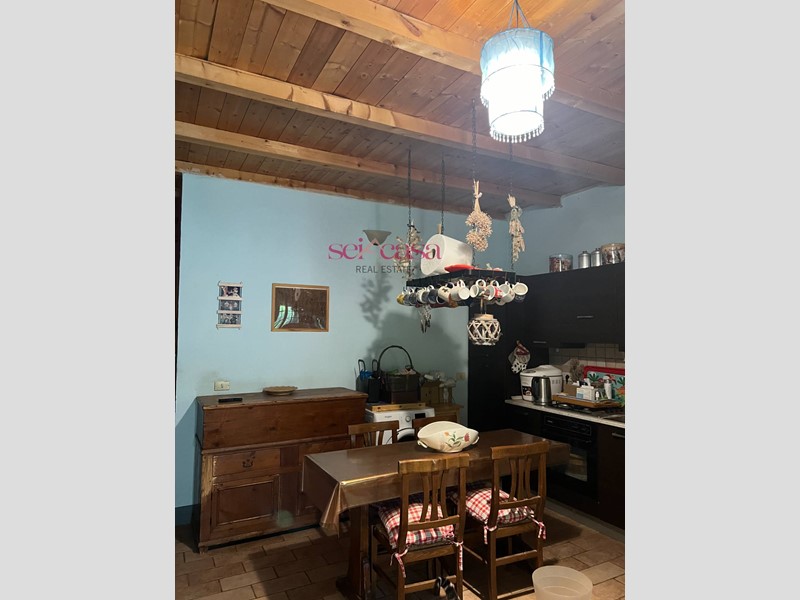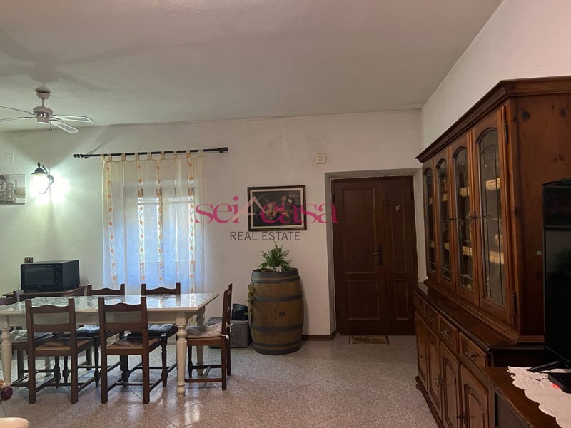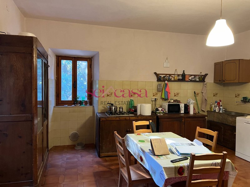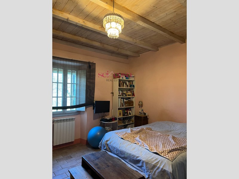 Sottostante ogni appartamento si trovano i garages e le cantine. Inoltre nella proprietà trovano posto una stalla, un fienile ed un capannone che in origine era una chiesa e presenta in alcune pareti piccole parti affrescate ma intonacate. I fabbricati sono circondati da terreno adibito a giardino, a passaggi e piazzali di manovra. La proprietà è da ristrutturare e dispone di ha 33 di terreno seminativo.