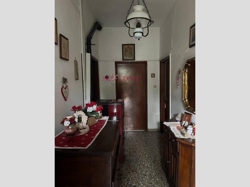 Per quanto riguarda l'unità abitativa vi si acceda da un giardino esclusivo e da una veranda. Lappartamento di mq 111 è posto su un unico livello ed è composto da 5,5 vani, precisamente da un ingresso, soggiorno, cucina, tre camere matrimoniali, bagno. Limmobile risulta edificato in data anteriore al 1° settembre 1967. Si mostra in buone condizioni di manutenzione sia esternamente che internamente nonostante non sia abitato da qualche anno e, necessitando comunque, di ristrutturazione. Lappartamento è tutto pavimentato con mattonelle in graniglia, dotato di impianto termico ed elettrico funzionante.
