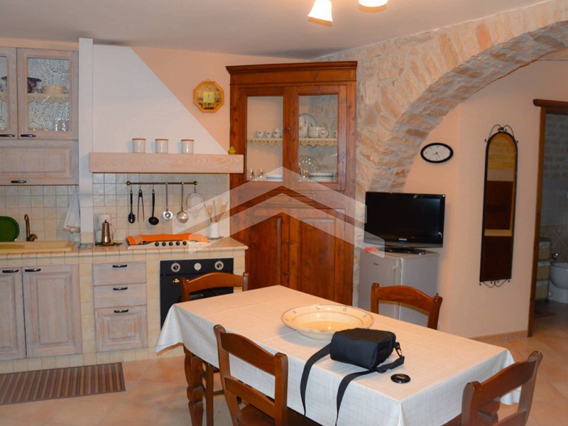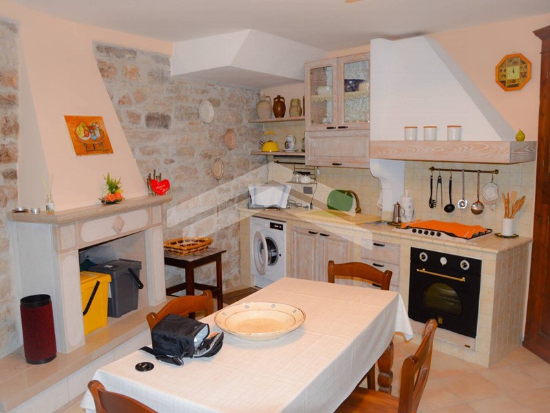 - Cucina: in muratura con sportelli in legno massello, realizzata su misura.