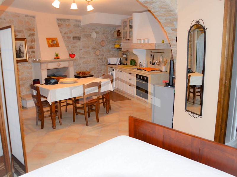 - Composizione: Sala da pranzo con angolo cucina e camino in pietra completato da una bellissima camera matrimoniale luminosa con finestra.