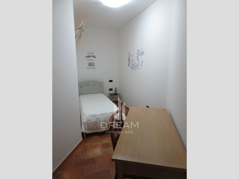 L'immobile è di 132 mq commerciali ed è composto da ingresso, soggiorno ampio con angolo cottura, antibagno e bagno con box doccia al piano superiore mentre camera da letto matrimoniale, camera da letto doppia, camera da letto singola con zona studio, bagno con box doccia e zona lavanderia al piano inferiore.