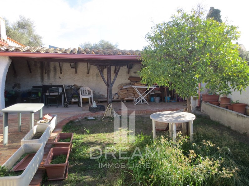 Completa la proprietà un loggiato coperto in canne e coppi sardi nella parte anteriore e un portico posteriore con vista sul giardino.