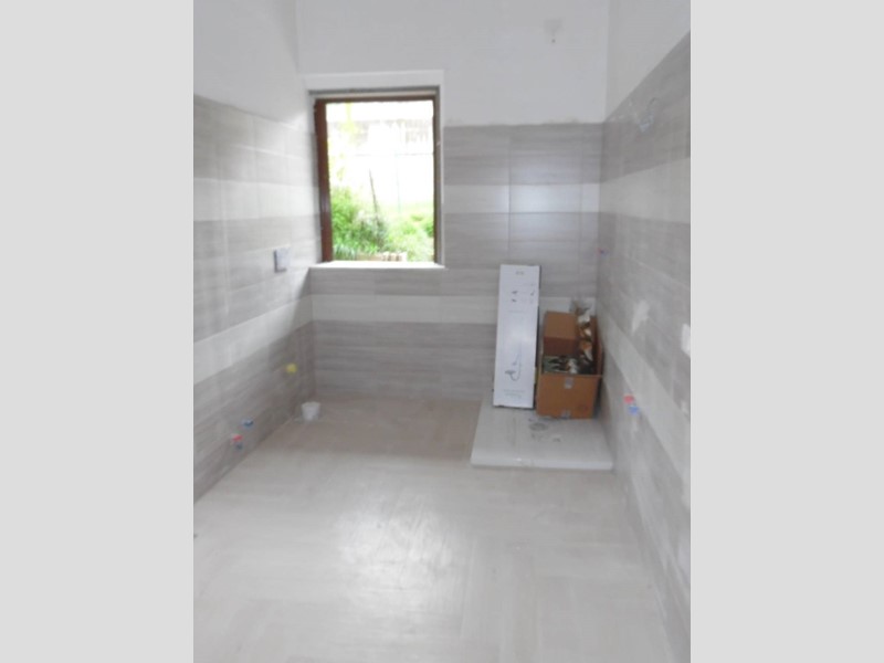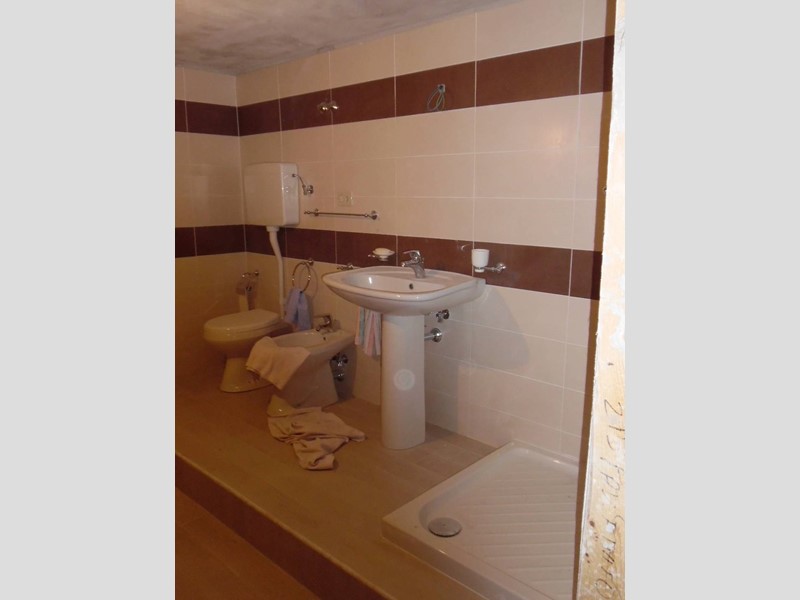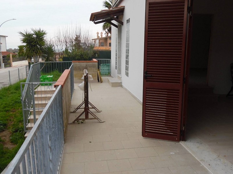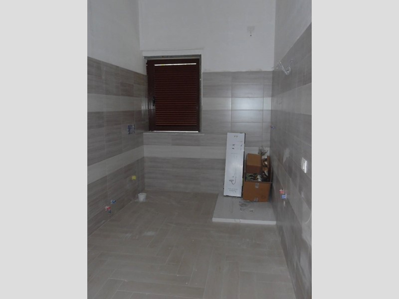 L'immobile si compone di piano seminterrato di circa 190 mq adibito a garage e ampio rustico pavimentato, bagno e antibagno; una comoda scala interna porta al piano rialzato di circa 180 mq. composto da ampio soggiorno, cucina abitabile, nr. 5 camere e nr. 2 bagni. Corte pavimentata più giardino di complessivi circa 400 mq. L'appartamento si presenta parzialmente finito in quanto mancano infissi interni ed esterni, sanitari, radiatori e caldaia. Possibilità di installare un camino in quanto sono presenti due canne fumarie. Pavimento uniforme in gress porcellanato, persiane in alluminio.