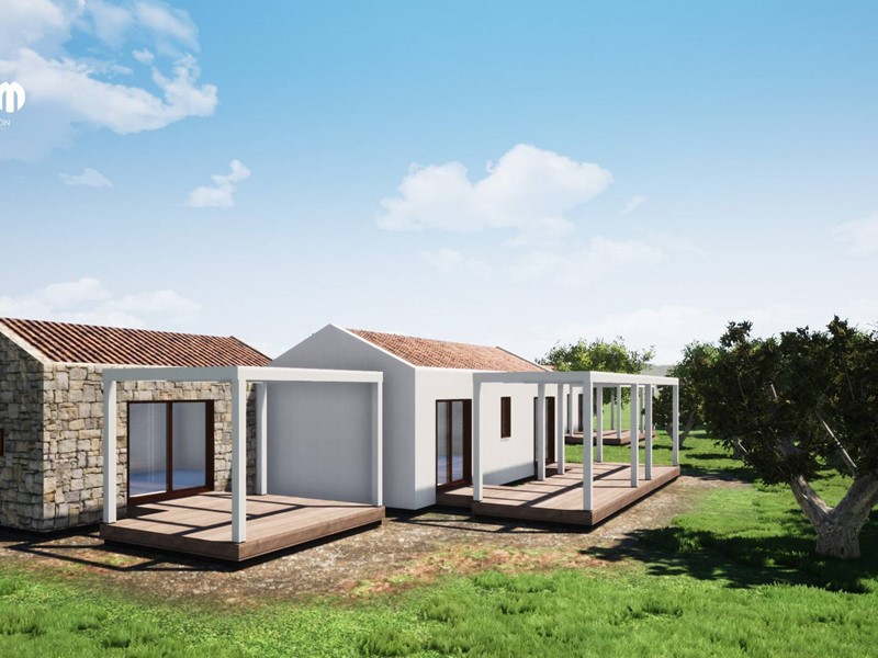 La casa è di circa 110 mq ampliabile fino ad un max di 150 mq, composto da unico piano con divisione interna e materiali scelta dell'acquirente, possibilità di piscina, il giardino circostante di circa 600 mq.