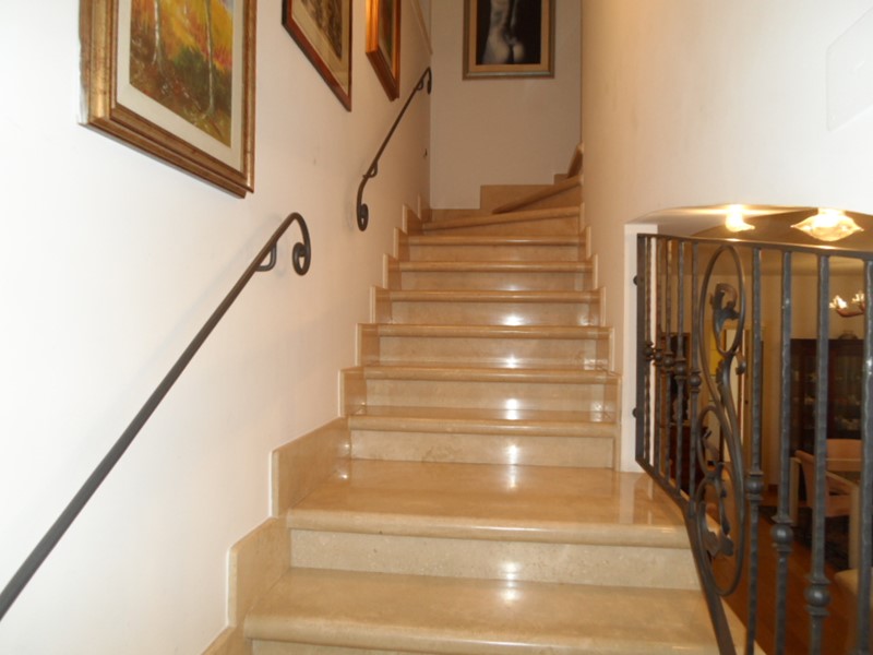 Riscaldamento con irradiazione a pavimento, parquet nelle camere, pregiato pavimento in marmo nel rustico, finestre in legno con doppi vetri, termoarredo nei bagni.