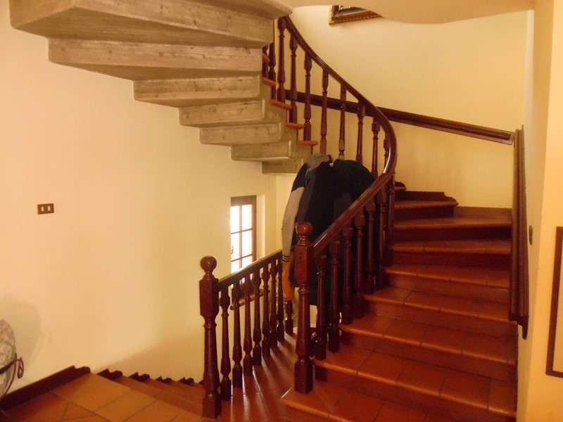 La villa è composta da piano seminterrato ma la maggior parte fuori terra da ampio rustico con camino, cucina, bagno, locale tecnico, garage doppio, scala per accedere al piano superiore;