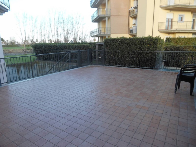 ingresso su soggiorno con angolo cottura, nr. 2 camere, bagno con doccia, nr. 2 ampi terrazzi per circa 60 mq, giardino circa 35 mq, posto auto privato, garage di circa 18 mq con accesso anche dal terrazzo;
