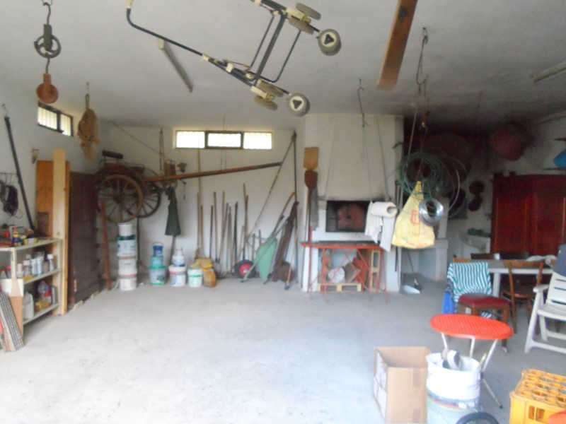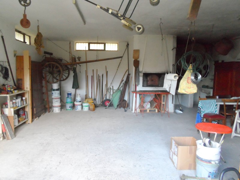 piano seminterrato di circa 80 mq composto da un ampio locale ad uso rimessa attrezzi dotato di impianti idrico ed elettrico oltre forno a legna e camino. con due serrande;