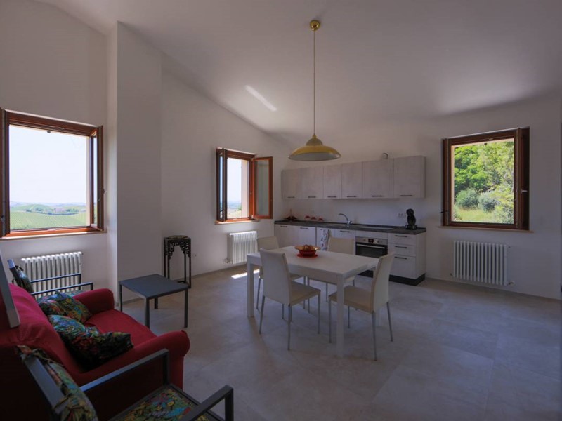 Rif. cas535 A 15 minuti da San Benedetto del Tronto, Casa Broker immobiliare propone in vendita casolare con vista panoramica sulla tipica campagna Marchigiana. L'immobile di circa 140 mq. si sviluppa su due livelli. Il piano terra di circa 85 mq. è composto di ampio salone con camino, angolo cottura, camera matrimoniale, antibagno e bagno con cabina doccia. Il piano primo, a cui si accede con comoda scala esterna è di 55 mq., è costituito da soggiorno con angolo cottura, disimpegno reparto notte, camera matrimoniale e bagno con cabina doccia. Allo stesso livello terrazzo di circa 30 mq. Tettoia adiacente di circa mq. 70 con battuto di cemento. La casa completamente ristrutturata nel 2022 viene venduta ammobiliata come da foto. Ha il tetto nuovo, cappotto per isolamento termico, impianto di riscaldamento autonomo su ogni piano con caldaia ibrida, condizionatori, infissi in legno con vetri taglio termico, scuri esterni. Materiali e finiture di prima qualità.