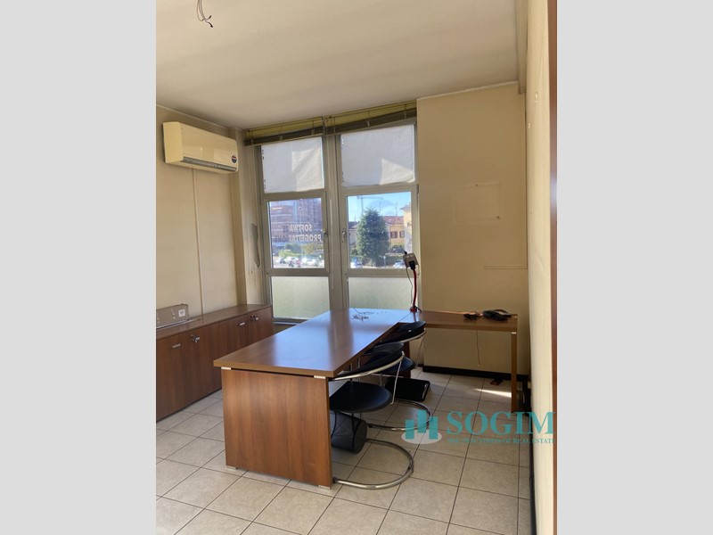 Posto al primo piano di un condominio, l'ufficio è composto da cinque stanze, una sala riunioni e due bagni. Si presta per uso ufficio, coworking oppure per studi professionali. Compreso un parcheggio riservato interno.