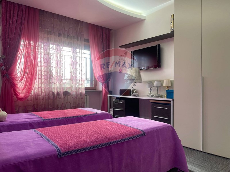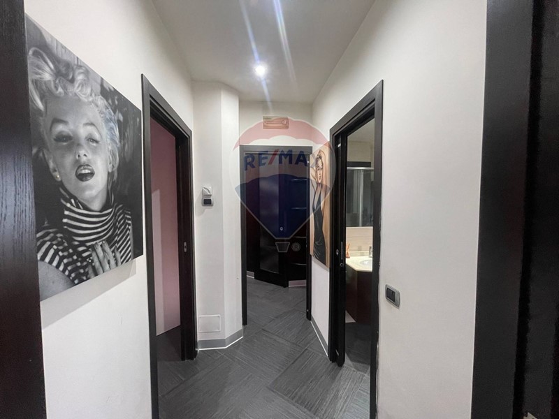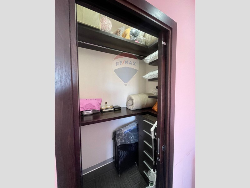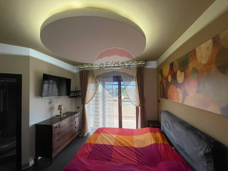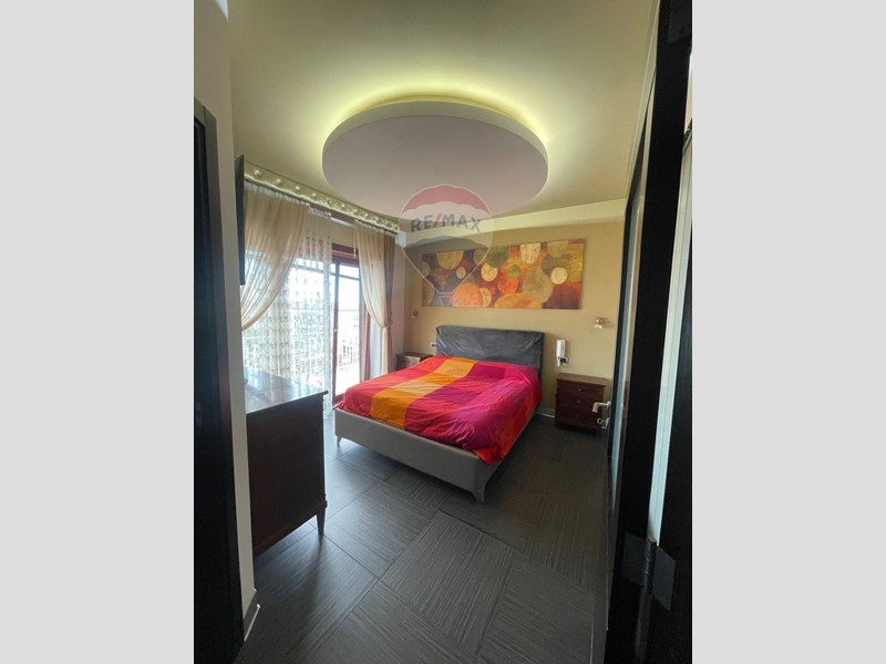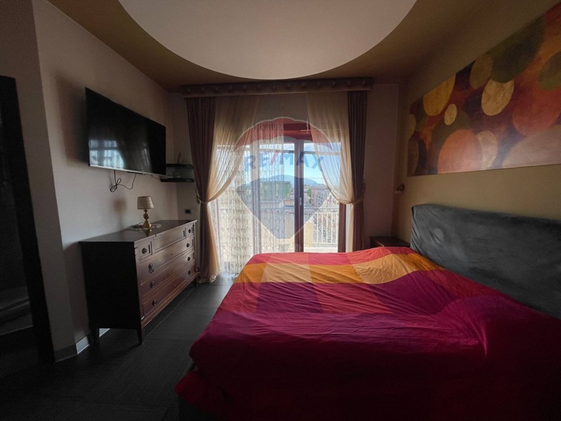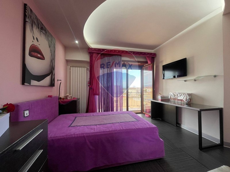 L'appartamento è composto da ingresso/disimpegno, cucina con balcone, corridoio con ampio e comodo armadio a muro; cameretta con finestra e cabina armadio, camera da letto padronale con ampia cabina armadio e bagno in camera con finestra, doppio lavandino e doccia XL; un ulteriore bagno con finestra e, per finire, un grande balcone panoramico con vista sul Vesuvio e sulla piazza principale, perfetto per chi ama rilassarsi e godersi la vista.
