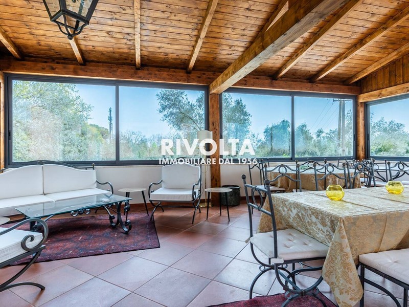 Completa la proprietà un'ampia veranda di 60 mq circa completamente arredata, adatta a vari tipi di eventi