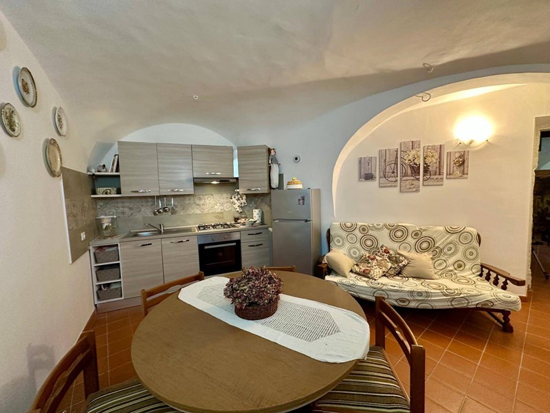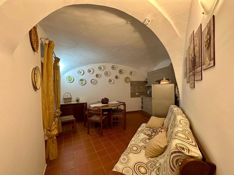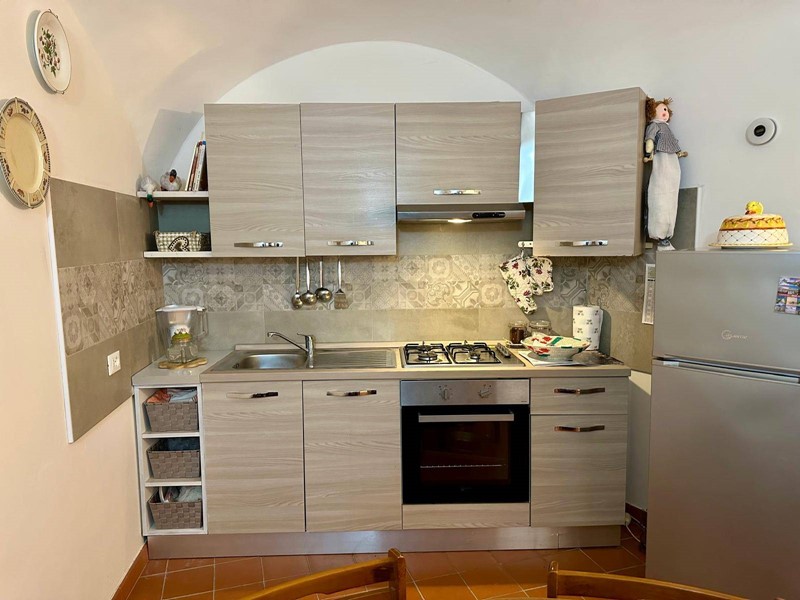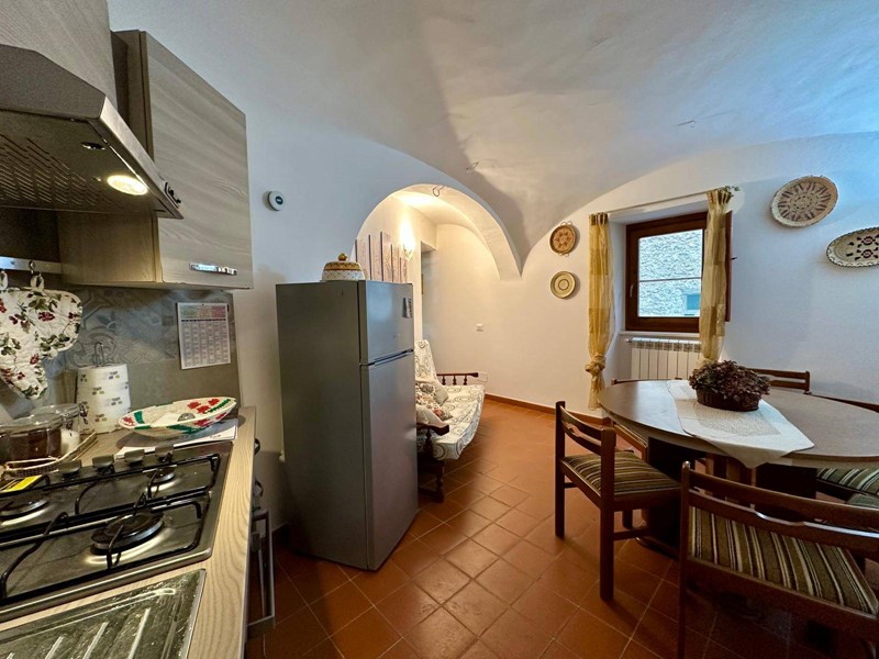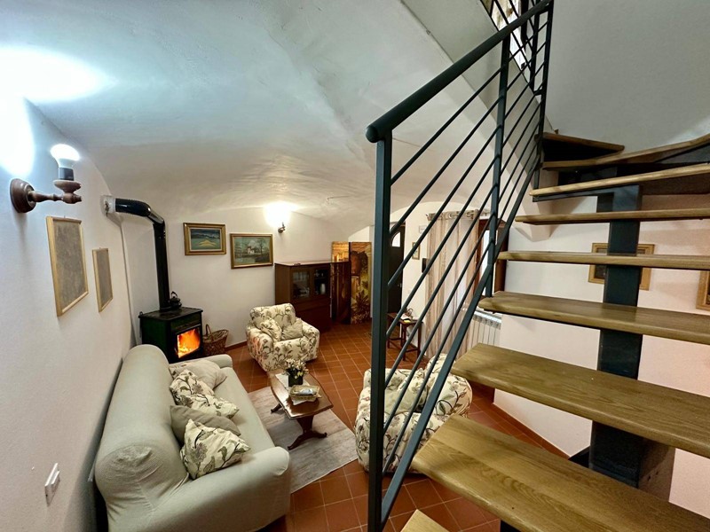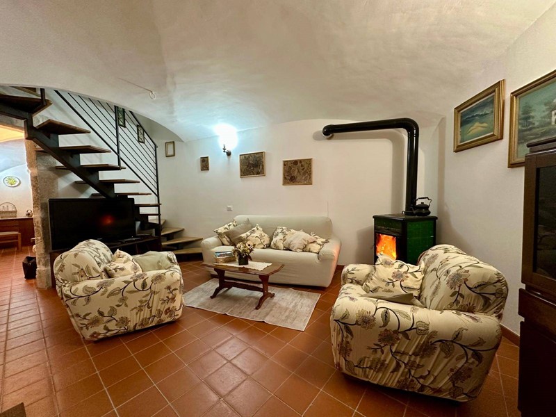 Al piano terra veniamo accolti da un ampio soggiorno con stufa a legna e una cucina abitabile, il tutto rifinito con volte a botte.