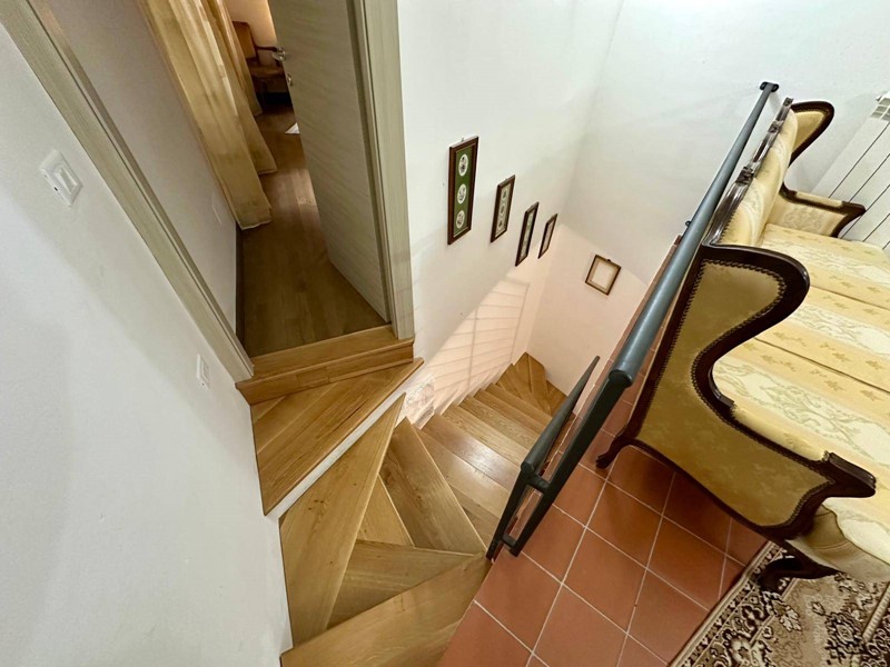 Una comoda scala, ci conduce al primo piano, dove troviamo un'ampio disimpegno che ci conduce ad una grande camera matrimonilae servita da balcone, una seconda camera matrimoniale rifinita con tetto a legno a vista e bagno con doccia.