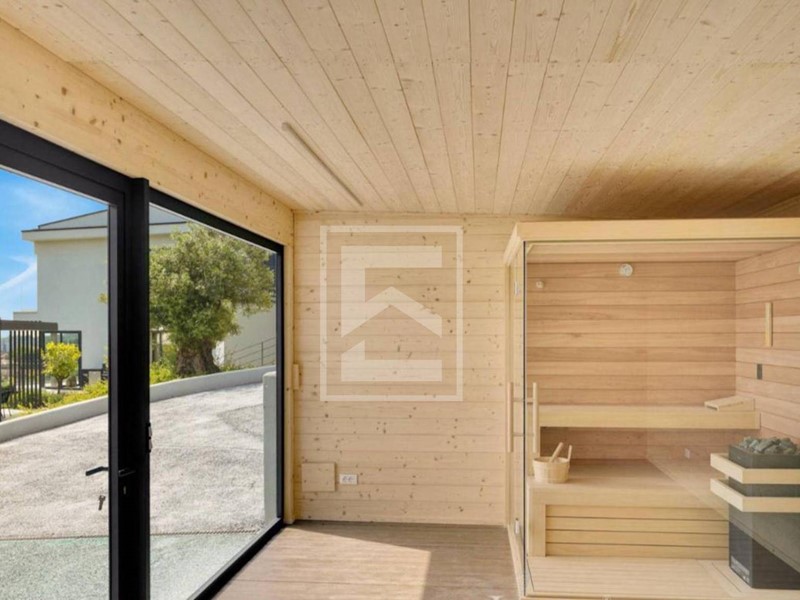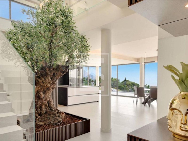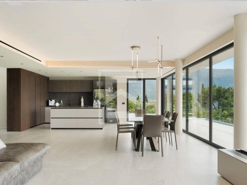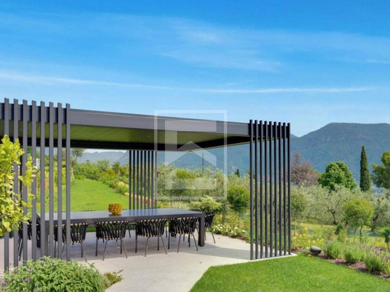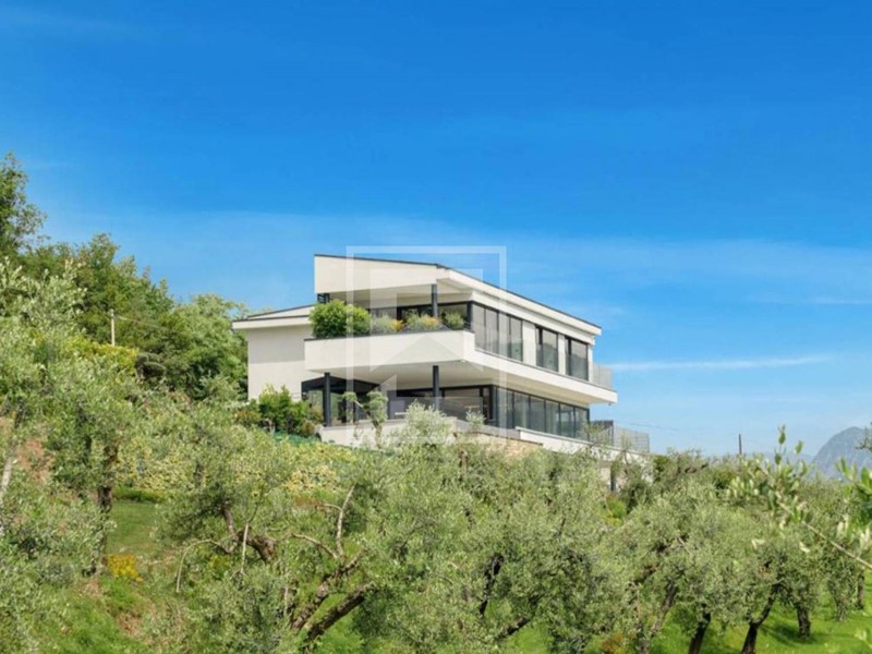 Il design della villa nasce dai più moderni concetti eco-sostenibili classe energetica A4: gli spazi interni si fondono in piena continuità con gli oltre 7.000 mq di giardino mediterraneo e un romantico uliveto, dove terrazze e verande molto grandi si affacciano sul lago e sui tramonti.