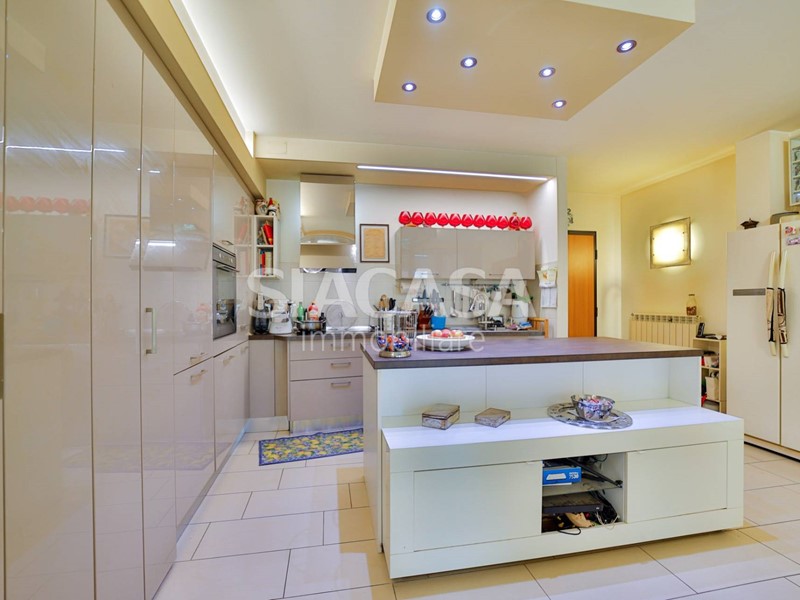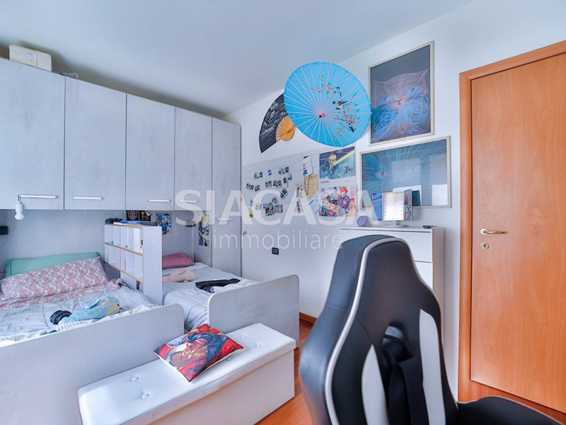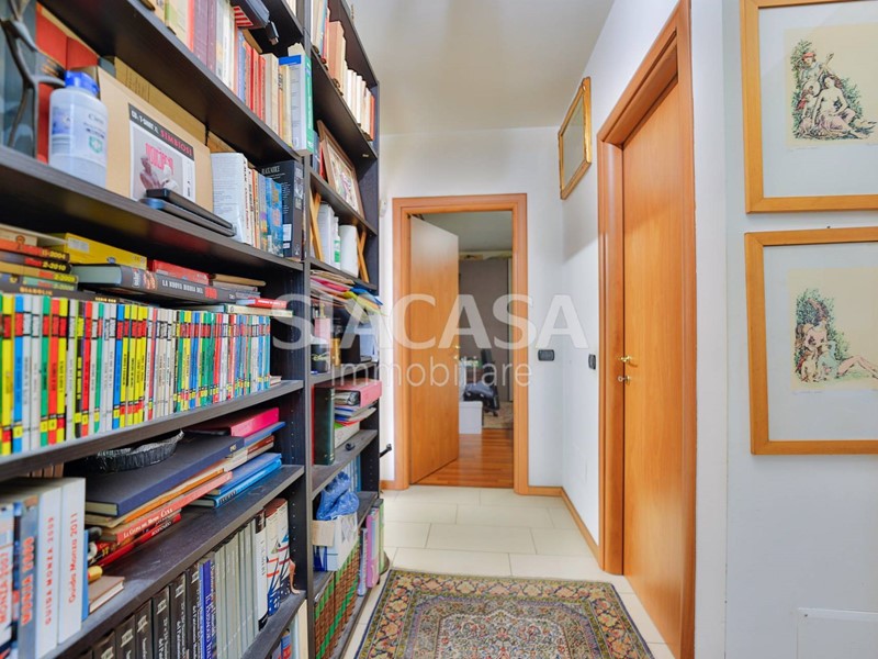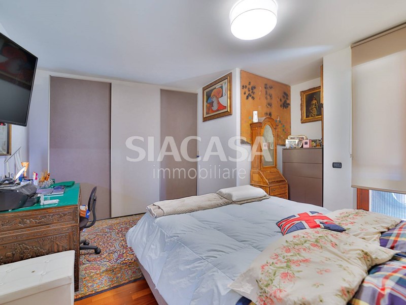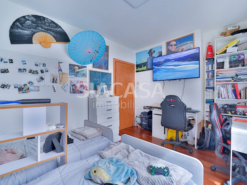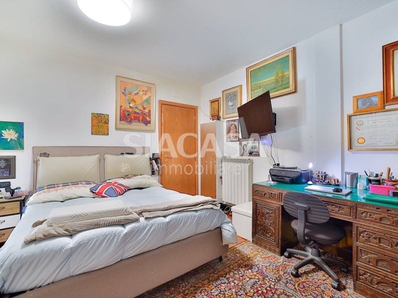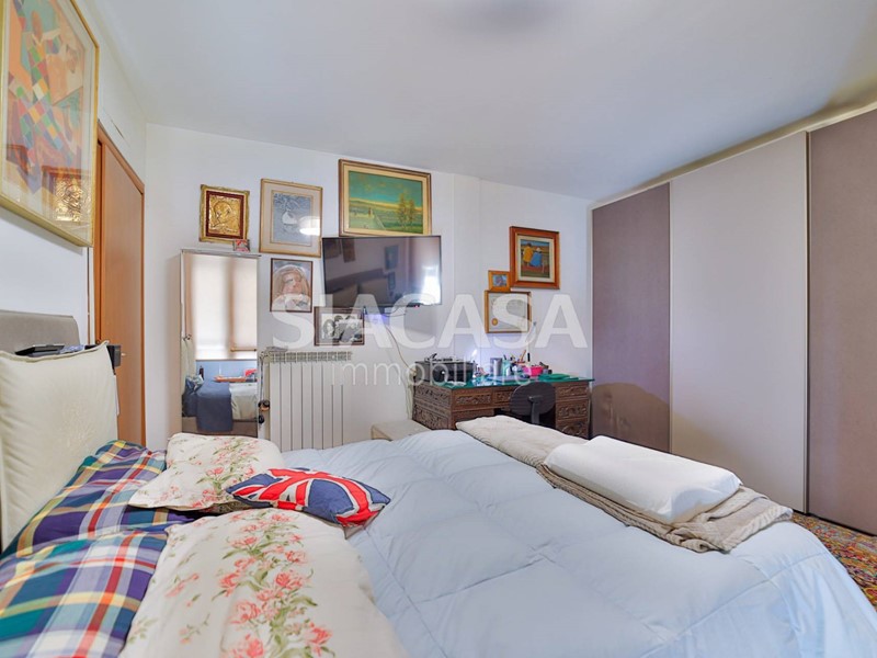 La zona notte è ben distribuita, con due camere matrimoniali, due bagni finestrati e comodo disimpegno.
