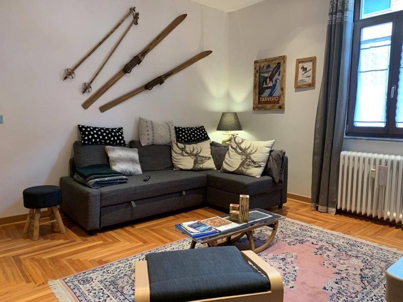 Appartamento completamente ristrutturato, con finiture particolari e originali a Tarvisio. Al terzo e ultimo piano del fabbricato è composto da ingresso, soggiorno/cucina, salone con caminetto a legna, bagno finestrato con doccia e idromassaggio, camera da letto matrimoniale e ampia cantina al piano interrato, anche questa rifinita con piastrellatura e portoncino di sicurezza. L'appartamento è stato completamente ristrutturato con interventi che hanno previsto il rifacimento della pavimentazione nella zona giorno e nel bagno con la posa di piastrelle tipo legno, il rifacimento completo degli impianti idrico ed elettrico, l'abbassamento e l'isolamento del soffitto. Anche i serramenti sono stati sostituiti con serramenti a tenuta termica. Viene venduto completo della cucina in muratura e dei particolari pannelli decorativi di rivestimento delle pareti. Il riscaldamento è centralizzato con elettrovalvole.