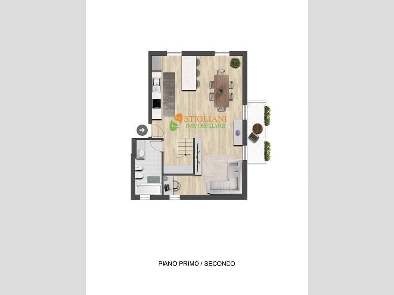 al piano terra troviamo ampia zona giorno, bagno, balcone con possibilità di ricavare una camera da letto;