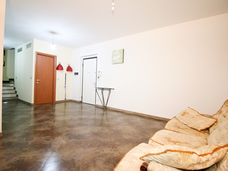 L'Ingresso è living su soggiorno con cucina a vista, questa zona è resa luminosa grazie ad una porta-finestra che conduce al balcone. Inoltre sempre al piano vi è il bagno dotato di box doccia.