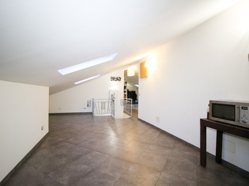 Tramite scala interna si accede al piano superiore dove abbiamo un ampio locale open space, divisibile in due zone distinte, una camera da letto matrimoniale e il secondo bagno dotato di box doccia e vasca.