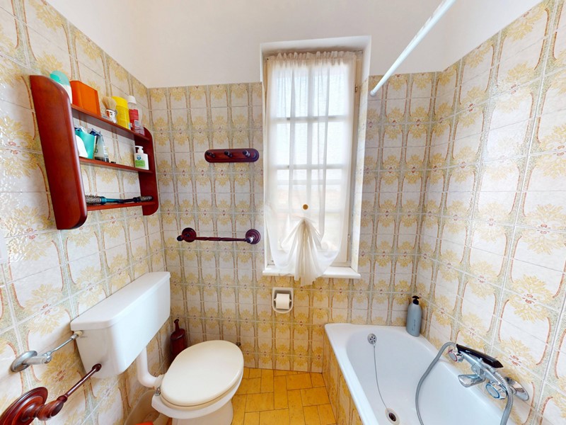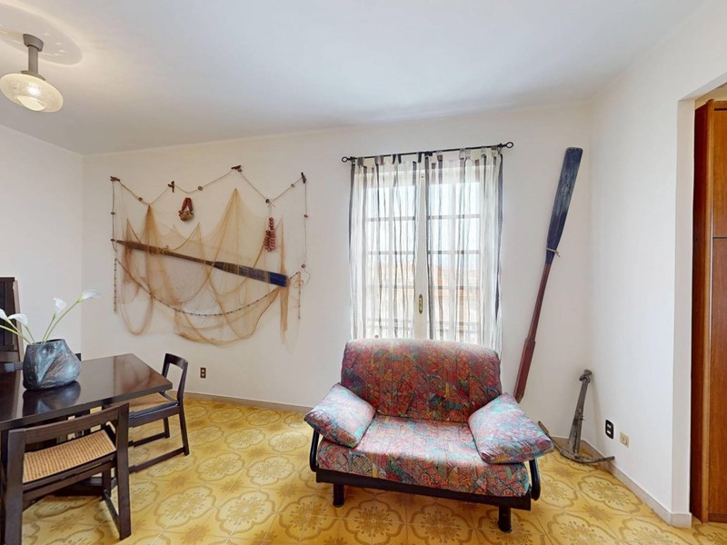 al primo piano: secondo ingresso da strada direttamente nella zona giorno, camera da letto (con predisposizione degli attacchi per ricreare una cucina) con terrazzino e primo bagno;