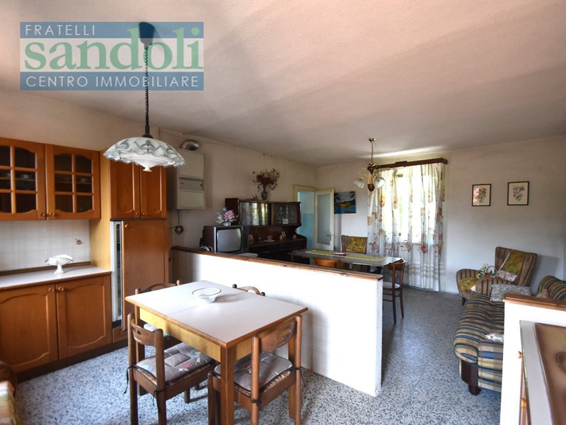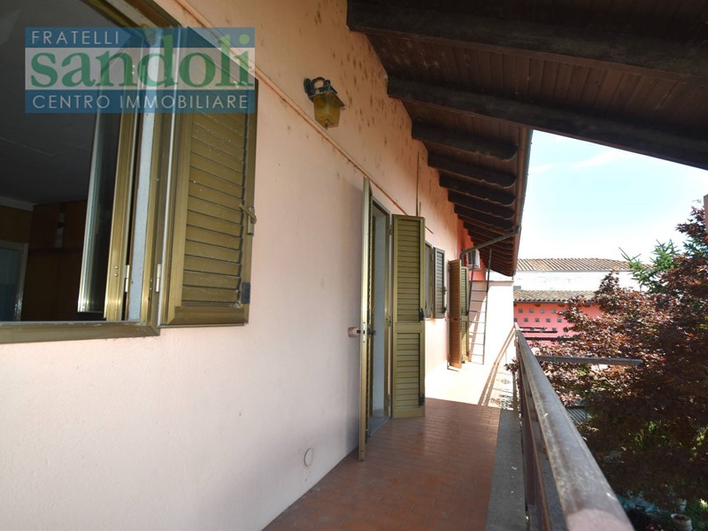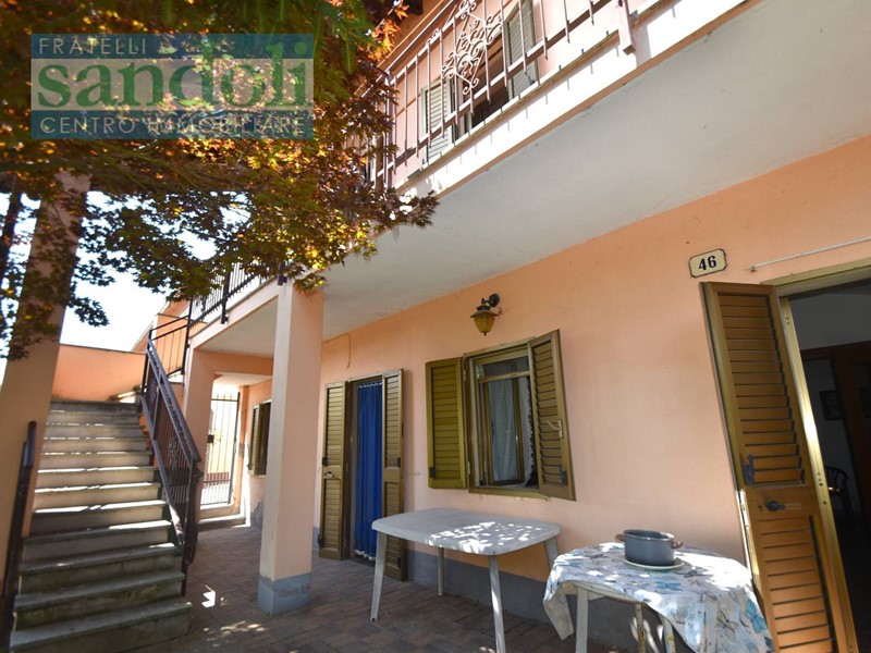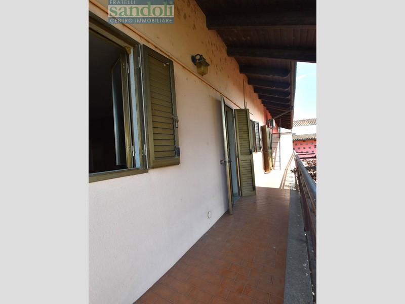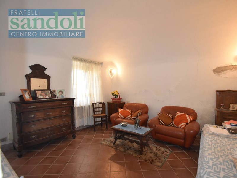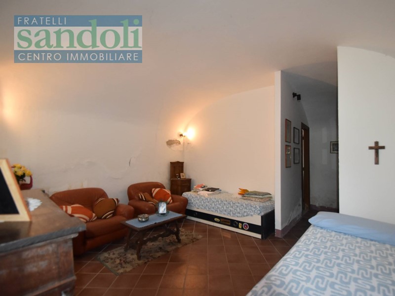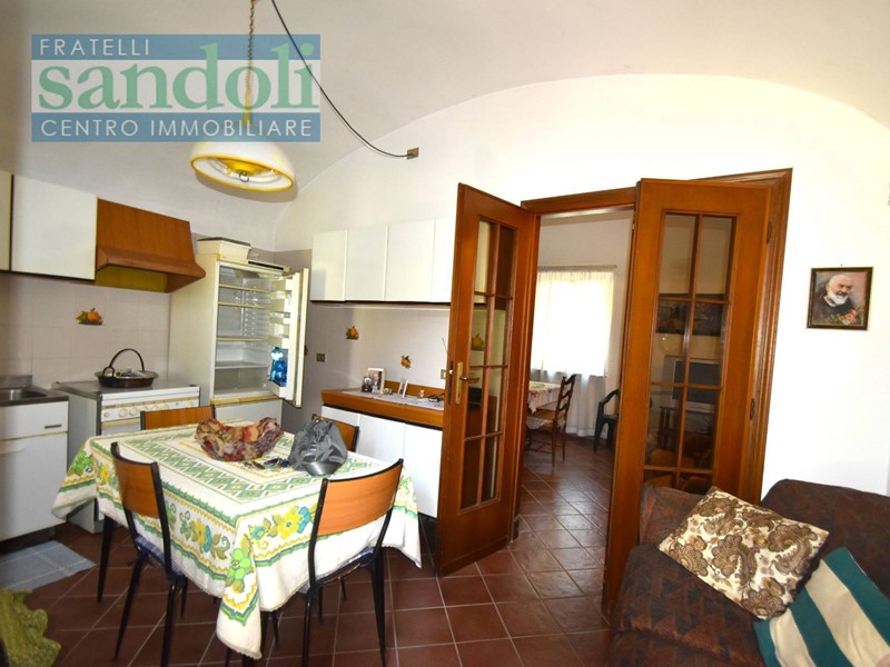 L'immobile è indipendente sui tre lati e disposto sui due piani, al piano terra con ingresso dal cortile accediamo alla zona giorno caratterizzata da voltini a botte composta dalla grande sala, una spaziosa cucina ed un bagno molto ampio con box doccia e zona lavanderia. Dalla scala esterna coperta da una splendida tettoia con travi a vista di moderna costruzione e con il passamano in ferro battuto e scalini foderati in pietra accediamo poi al primo piano dove si sviluppa attualmente un secondo appartamento composto dal soggiorno molto luminoso con cucina a vista, una camera da letto ed il relativo servizio con presente la vasca. Al piano con accesso appunto dalla scala esterna vi è un lungo balcone anch'esso con copertura del tetto con travi a vista.