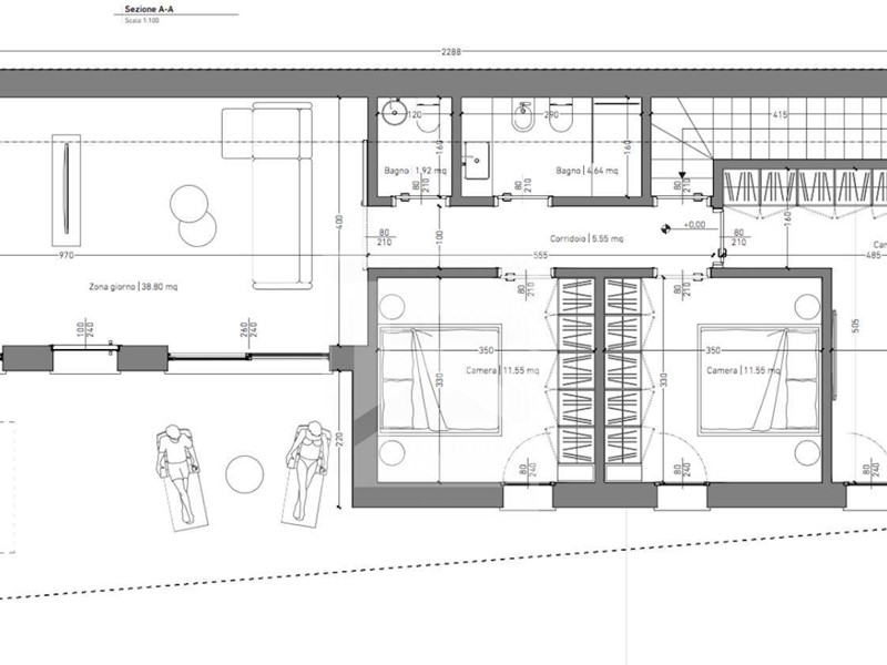 La Villa misura circa 180 mq interni calpestabili e si sviluppa su 2 livelli fuori terra: al piano terra troviamo l'ampia zona living con totale vista castello grazie agli infissi scorrevoli che ci permettono di accedere direttamente all'importante portico coperto e alla zona piscina, un bagno di cortesia per gli ospiti. Direttamente dalla zona living accediamo poi alla zona notte dove si sviluppano 3 camere matrimoniali e 2 bagni di cui 1 en suite nella master room che ospita anche una comoda cabina armadio.