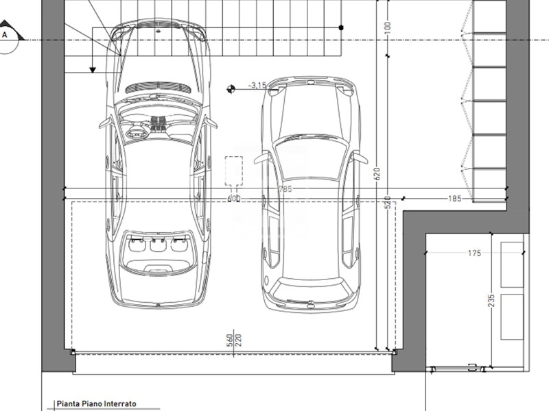 Al piano sottostante e fuori terra, comunicante internamente, troviamo ampia autorimessa e cantina.