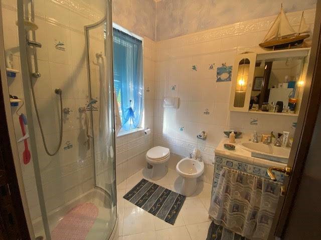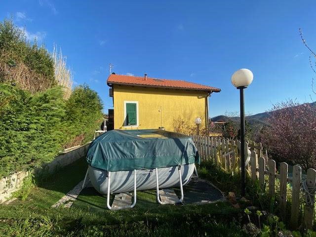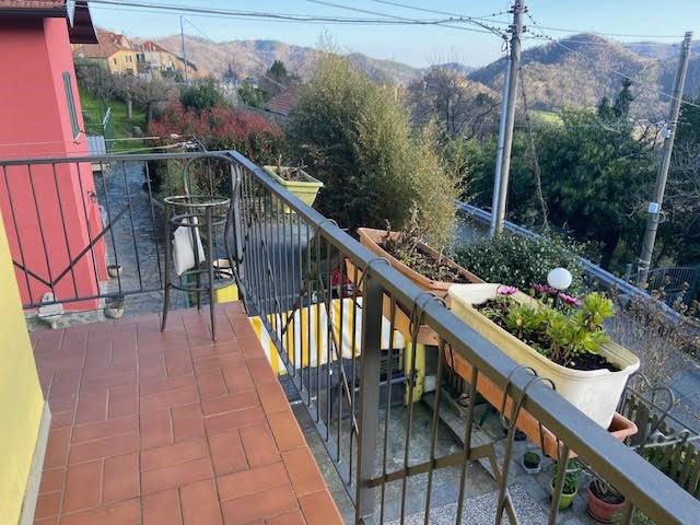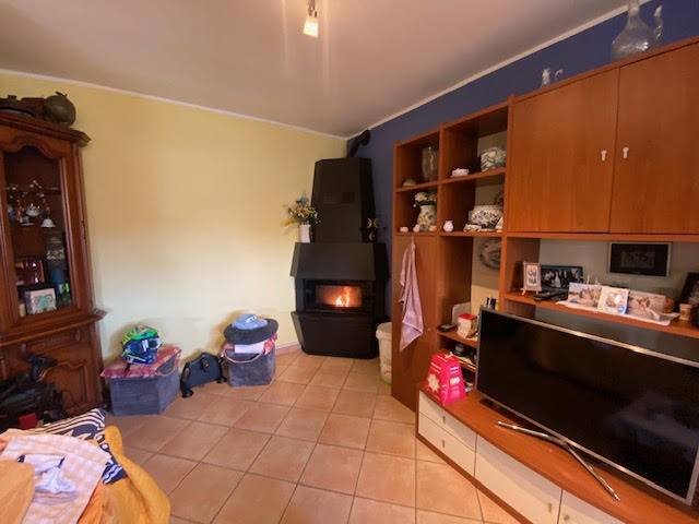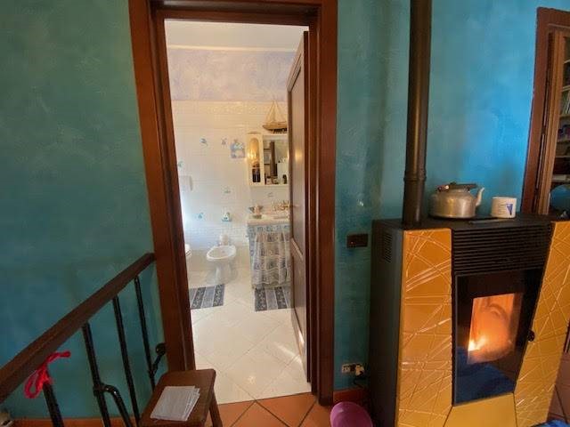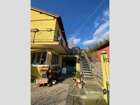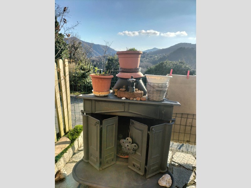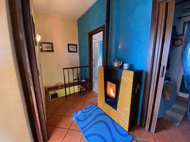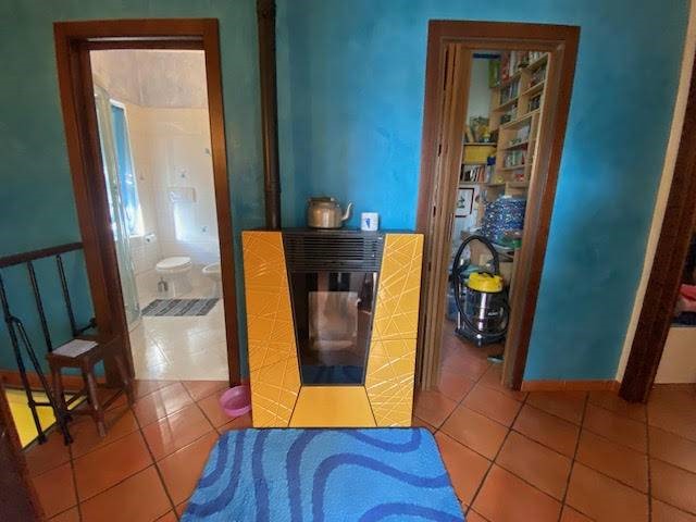 Al piano superiore tre camere da letto, ripostiglio, bagno, ampia balconata e terrazza. Riscaldamento autonomo con camino e stufa a pellet.