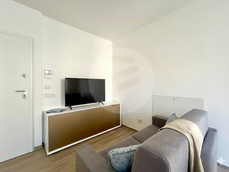 Internamente composto da ingresso su luminoso soggiorno, ampia camera matrimoniale e bagno finestrato; profonda balconata.