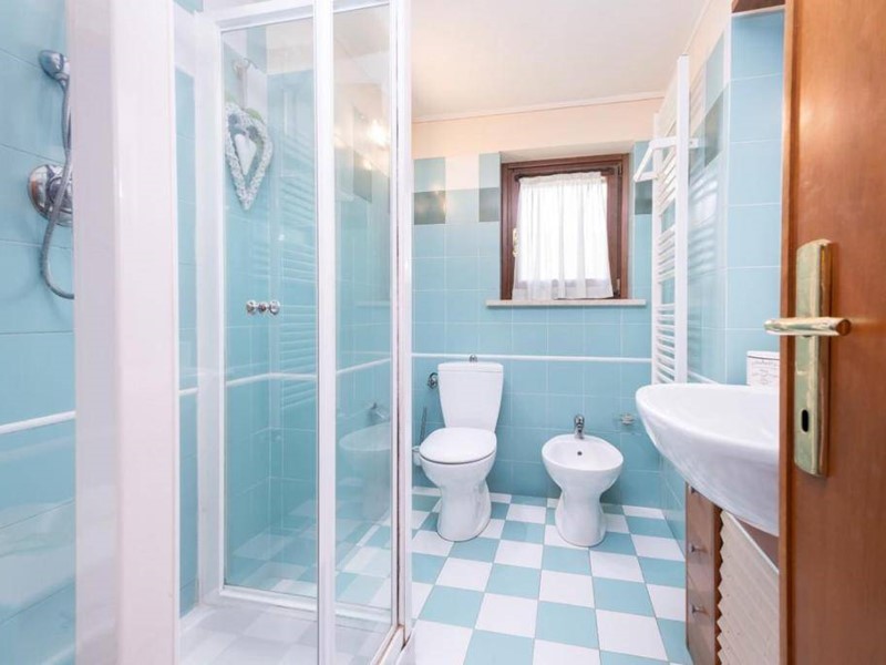 Entrata in una grande soggiorno/cucina con camino e forno in muratura, una camera matrimoniale, e una camera quadrupla di grande metratura, bagno con doccia e ripostiglio con lavanderia.