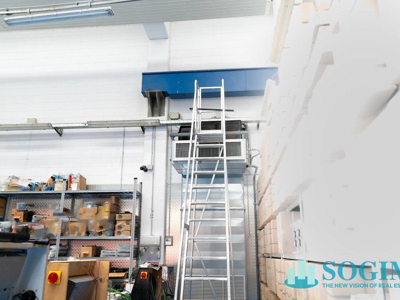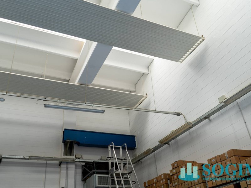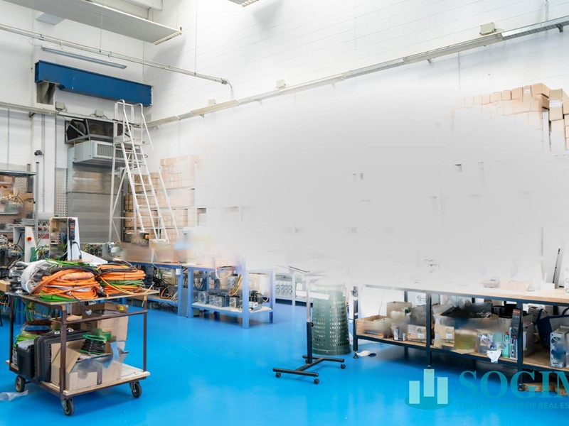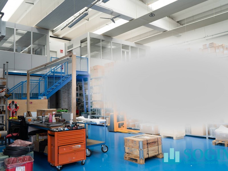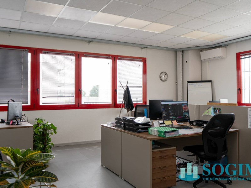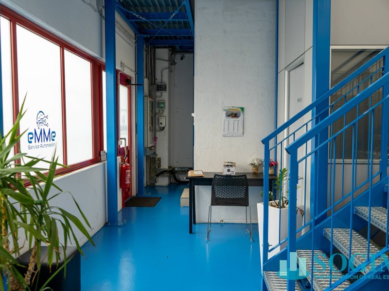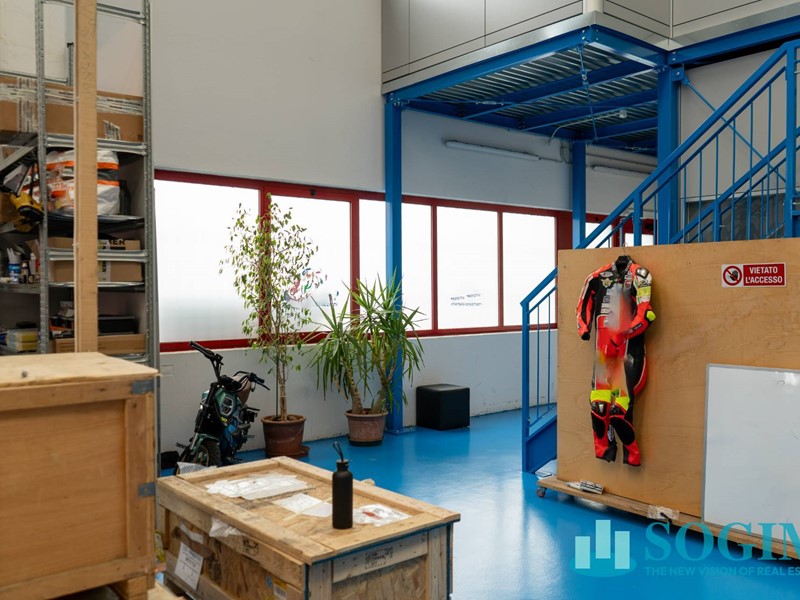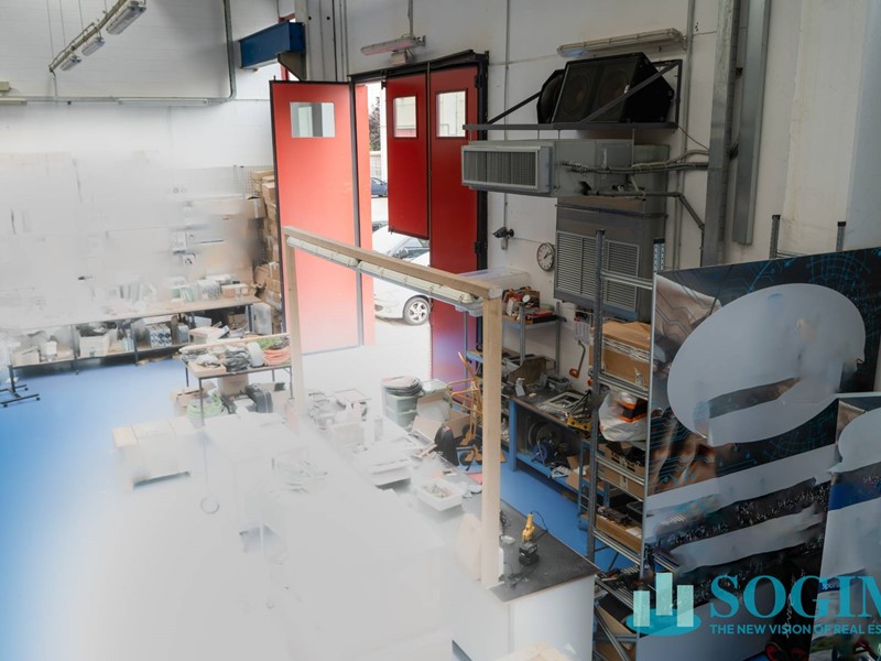 L'unità immobiliare si sviluppa su due livelli: al piano terra è ubicato un deposito/laboratorio di 360 mq con altezza sotto trave di 6,50 mt, una sala riunioni e i servizi con spogliatoi per i dipendenti; il piano primo è costituito dall'ufficio direzionale e un laboratorio oltre servizi per una superficie complessiva di mq 115.
