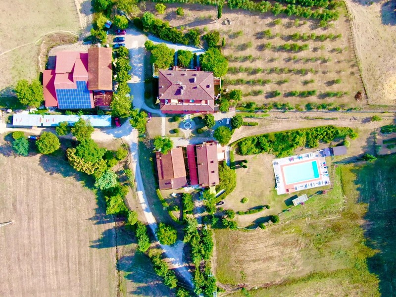 L'azienda è munita di certificazione biologica sia per l'allevamento sia per quanto riguarda la produzione di foraggi, uva e oliveto. All'interno dell'azienda agricola è operativo un agriturismo dall'anno 1997 composto da 13 appartamenti, dei quali 6 sono bilocali di circa mq.55 ciascuno, 5 appartamenti trilocali di circa mq.75 ciascuno, e 2 quadrilocali di mq.95 ciascuno. Ogni appartamento ha ingresso indipendente, cucina propria e giardino o terrazza privati. Sono a disposizione anche un locale comune composto da reception, cucina, ed un locale adibito a lavanderia, oltre a locali tecnici e di rimessaggio.