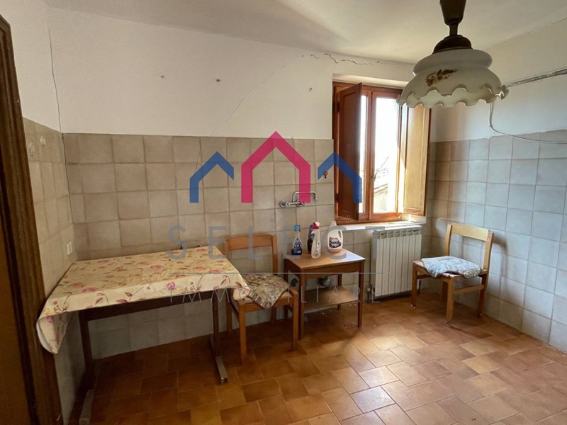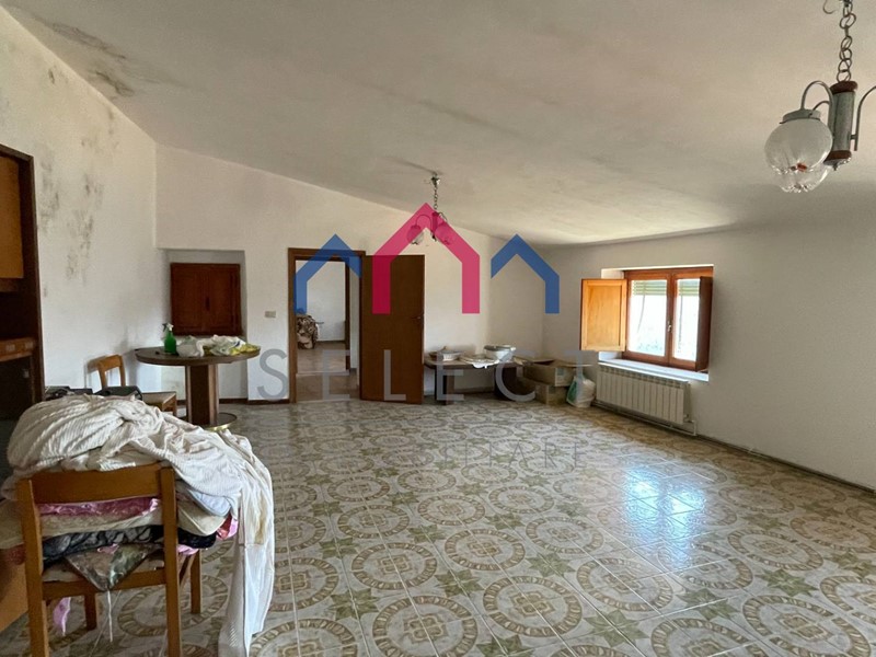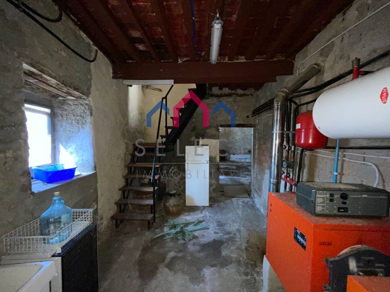Si compone di ingresso, con scale per accesso ai piani, cucinotto con camino, bagno con doccia, soggiorno con balcone e due camere al piano terra. Al piano primo da due camere di cui una mansardata molto ampia. Al piano seminterrato con accesso sia interno che esterno abbiamo 4 vani uso cantina per circa 80 mq.