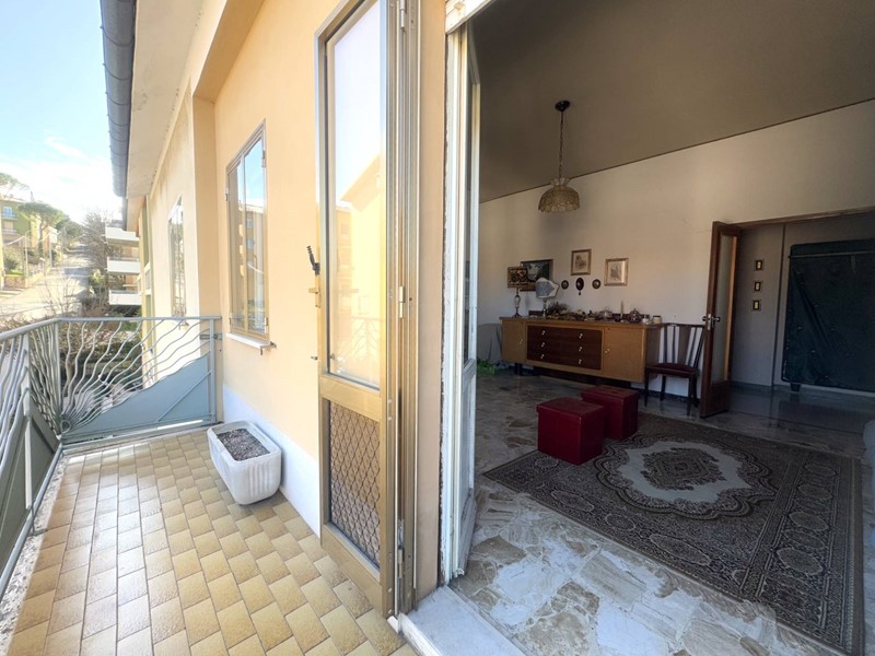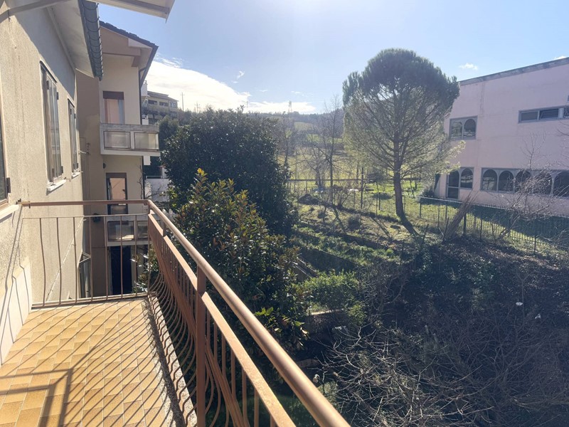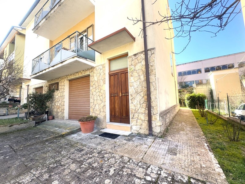 L'Agenzia Immobiliare Ninno presenta in vendita porzione di casa bifamiliare, al secondo piano, con ingresso indipendente e giardino, ubicata all' inizio di Via dei Cappuccini, nelle immediate vicinanze del centro di Fabriano. L'abitazione si estende su un unico livello, per una superficie di mq 125 circa con grande e luminoso soggiorno con balcone, tinello con balcone, cucinino e dispensa, tre camere ed un bagno. Il piano terra è dedicato al garage di mq 25 e due locali annessi di mq 30, con accesso diretto al giardinetto sul retro. A completamento della proprietà al piano seminterrato una cantina di mq 28 e capiente soffitta al piano terzo, di mq 120 circa con terrazza verandata. Ottimo contesto cittadino.