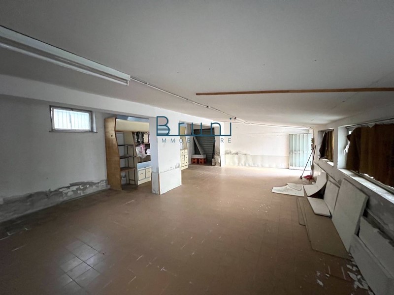 Composto da: unico locale con due vetrine più porta d'ingresso esposte su fronte strada ad alto passaggio pedonale e veicolare, oltre a magazzino indipendente di circa 68 mq e corte esterna ad uso parcheggio 380 mq, bagno, ripostiglio, dotato di canna fumaria.