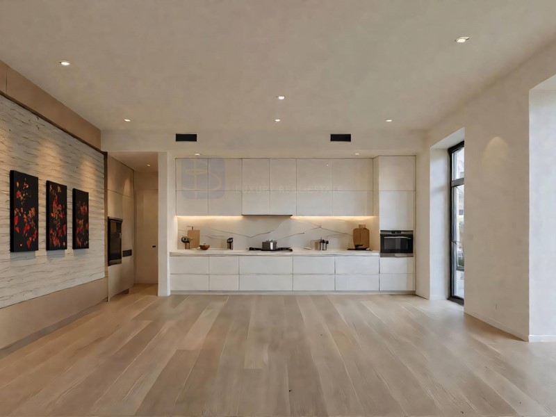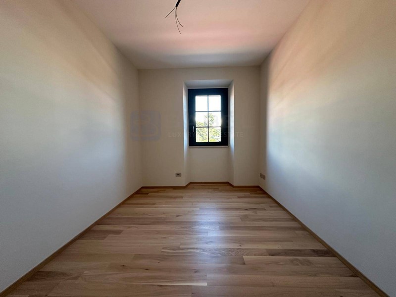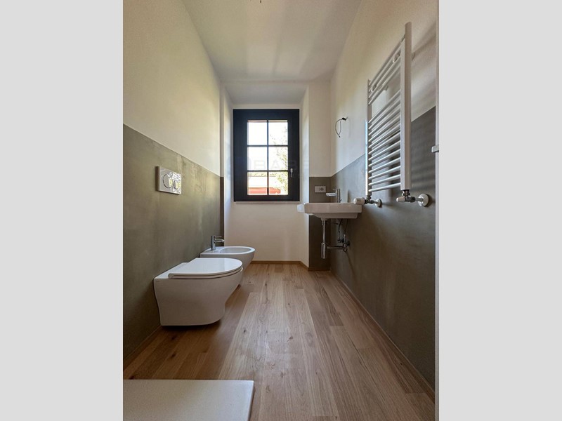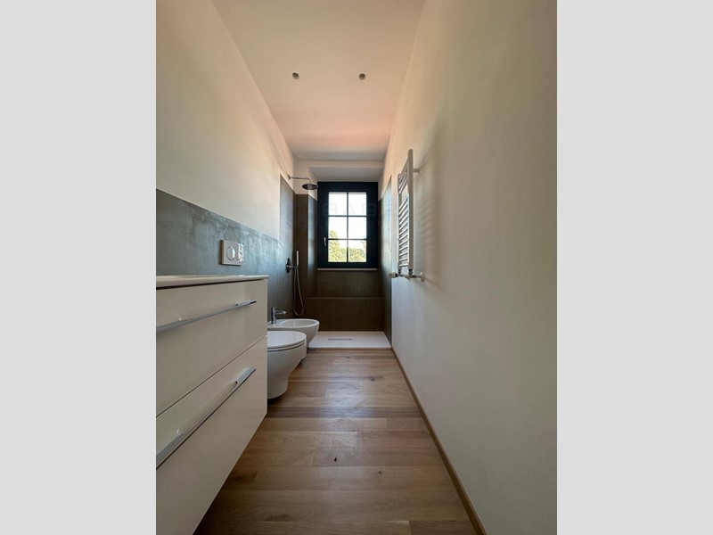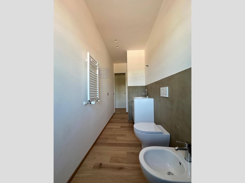L'appartamento, appena ultimato, gode di finiture interne di alto pregio, tra cui: impianto di riscaldamento autonomo a pavimento con caldaia a condensazione, parquet in vero legno di rovere, rivestimenti bagni in resina e sanitari sospesi, infissi doppio vetro in alluminio Schuco, predisposizione nei diversi ambienti per l'impianto di condizionamento.