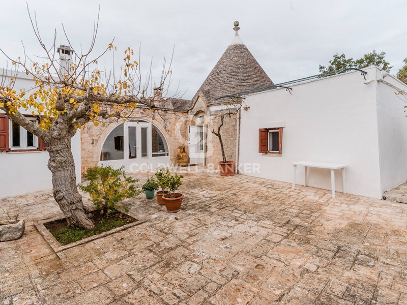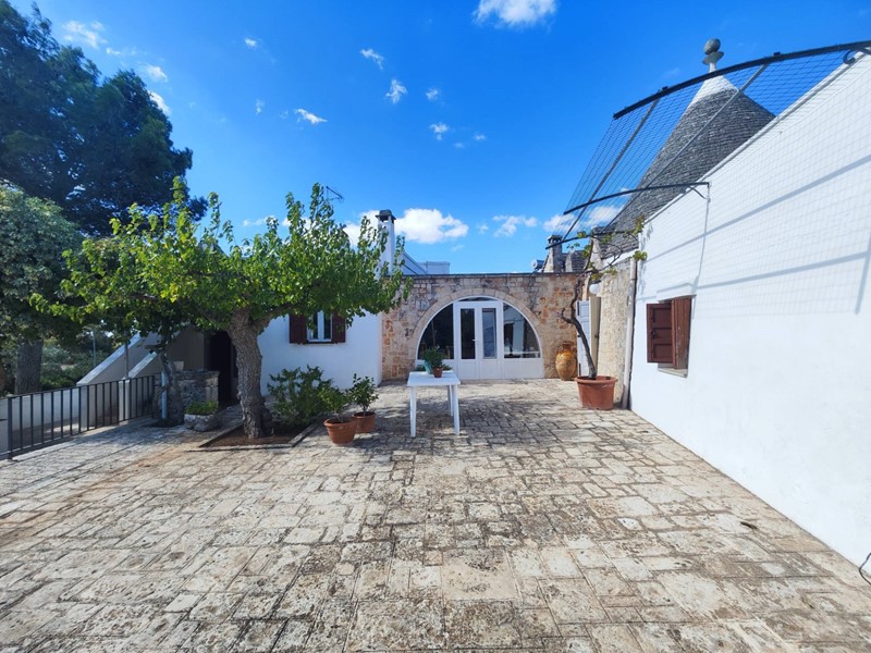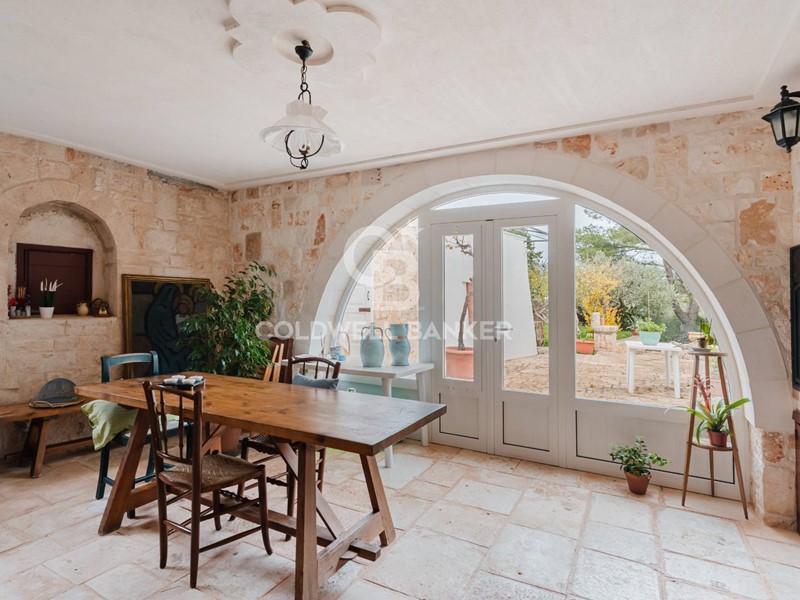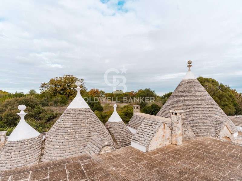 Gli interni sono luminosi e accoglienti, con ampie vetrate che si affacciano sul parco, mentre ai trulli, sapientemente ristrutturati, si aggiungono ampi spazi esterni con un parco privato di 10.000 metri quadrati, completamente recintato da un muro a secco.