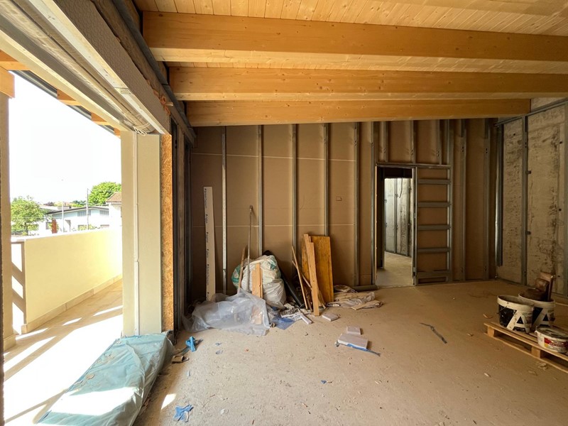 Cordenons zona servita vicina al centro, in palazzina di solo due unità di nuova costruzione in classe A4 posizionata all'interno di un piccolo e piacevole borgo, proponiamo appartamento al primo piano con travi a vista. Composto da ingresso su zona giorno con angolo cottura e terrazza con vano tecnico, disimpegno attrezzabile, camera matrimoniale, camera singola, bagno. Completo di garage. Riscaldamento termoautonomo, ottimo capitolato e possibilità di personalizzare le finiture interne.
