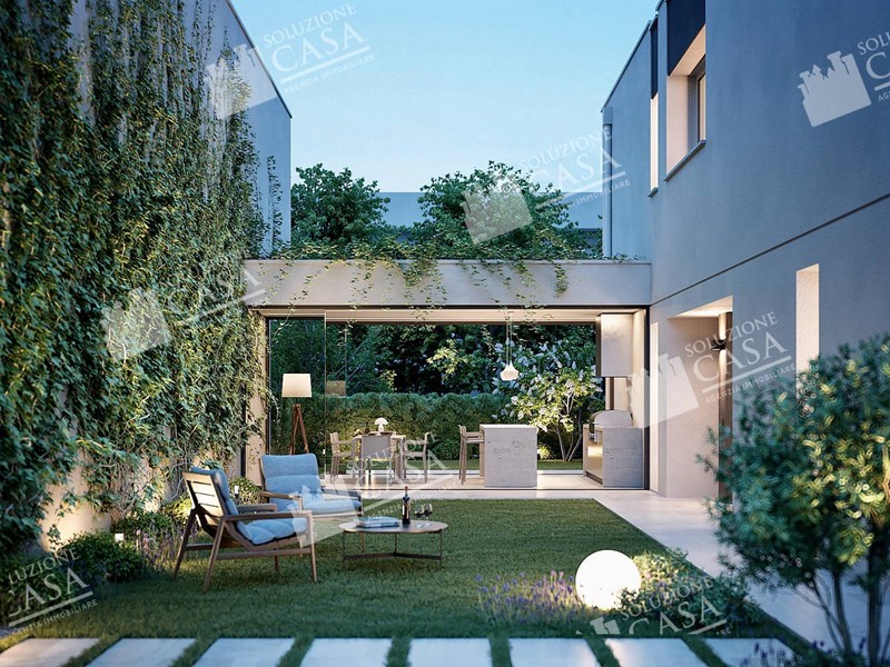 L'immobile, al piano terra con ingresso indipendente, è composto da ingresso su soggiorno e cucina a vista open space, disimpegno, camera matrimoniale, camera singola, bagno, posto auto e giardino privato.