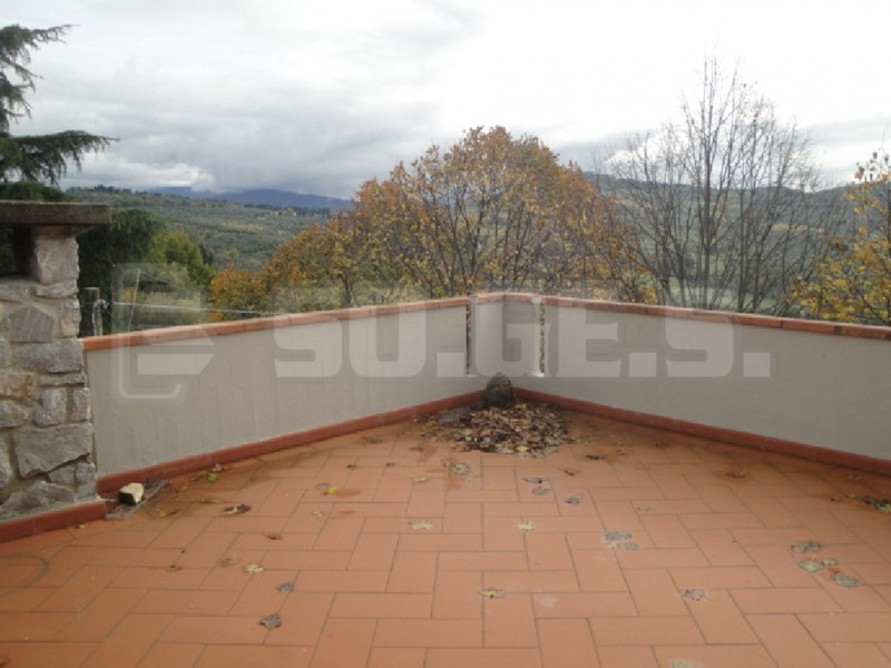 Colline di Molin del Piano, loc. Doccia, bellissima villa indipendente di circa 300 mq compressivi con 800 mq di spazio esterno fra terrazzi, corte, giardino e terreno. In posizione tranquilla e panoramica, di accesso direttamente dalla strada asfaltata, si compone al piano terreno di ampia taverna con camino, garage collegato internamente, servizio e ripostiglio, dotata di accesso al loggiato e cortile lastricato. Al piano primo un bellissimo salone doppio con altro camino, cucina abitabile, camera e bagno, oltre varie terrazze abitabili di accesso al giardino, alla serra e poi al terreno naturale; al piano primo abbiamo quattro camere, un altro servizio finestrato e due ampi balconi, di cui uno ha anche la scala per accedere al giardino. Infine al secondo piano abbiamo uno studio sottotetto con accesso al terrazzo panoramico di oltre 20 mq. Ottime condizioni, termosingolo a metano. Divisibile in due appartamenti. Classe G con I.P.E. 197,33 kwh/mqa. - Rif. 34644