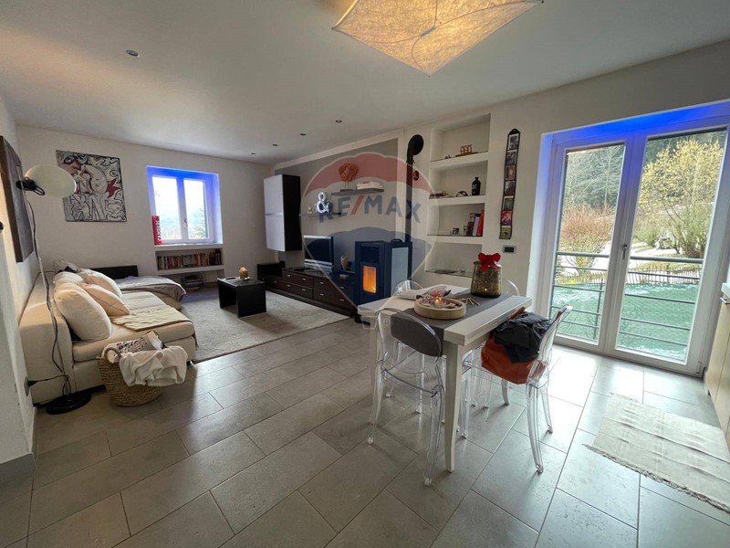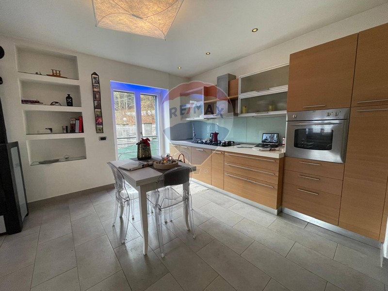 Al piano principale si trova una luminosa cucina a vista, perfetta per cucinare e socializzare con amici e familiari l'ambiente viene scaldato da una stufa a legna per
