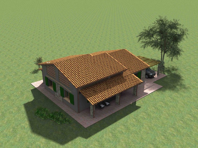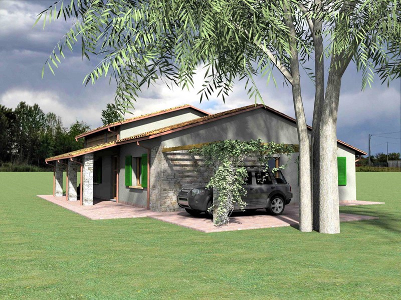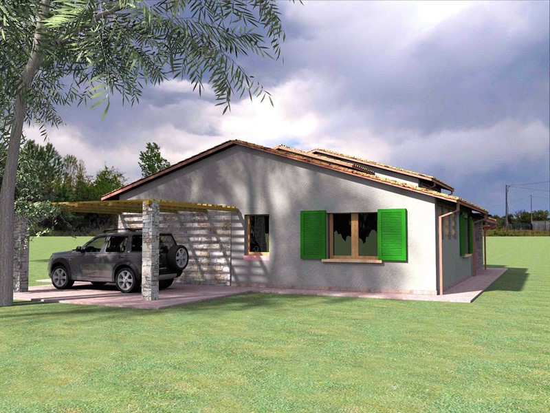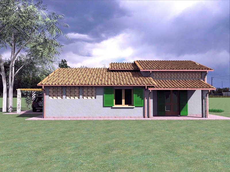 La villetta sarà disposta su un unico livello fuori terra con superficie lorda di circa 120 mq e sarà composta da cucina abitabile, soggiorno/sala da pranzo, ripostiglio/dispensa, disimpegno zona notte, tre camere e due bagni.