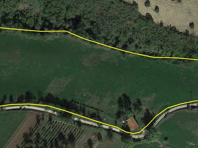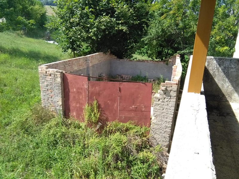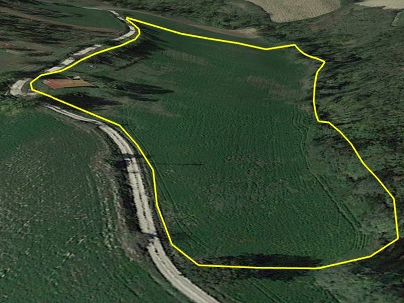 oltre a terreno in leggera pendenza a seminativo, esposizione sud di 26.420 mq., con ampio fronte strada, irrigabile da sorgente pubblica nei pressi del fabbricato, un garage di mq. 17, un accessorio fatiscente di mq. 13 ed una serra