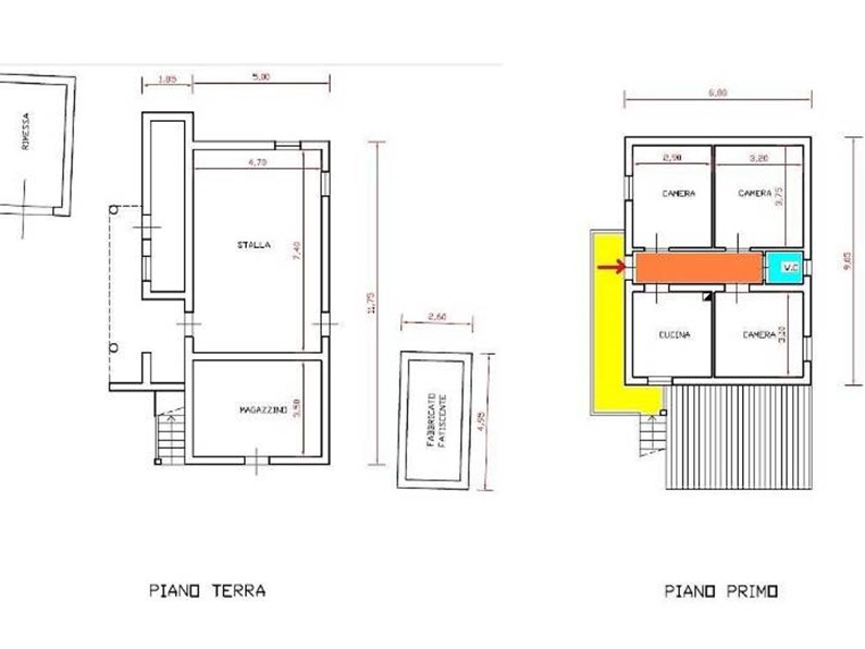 composto da piano terra con stalla e rimessa e da primo piano con cucina abitabile con camino e 3 camere