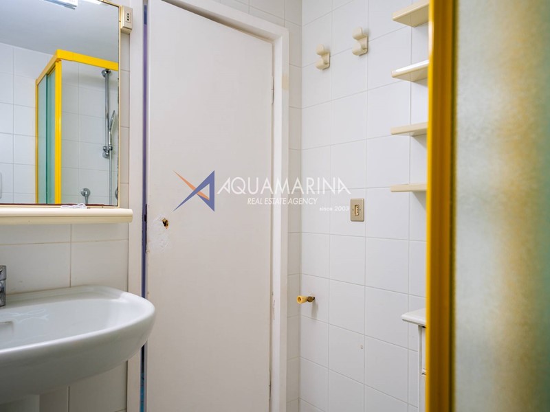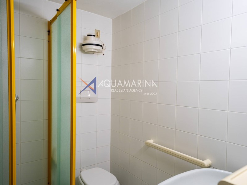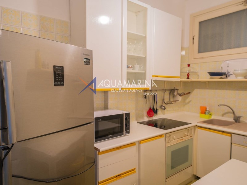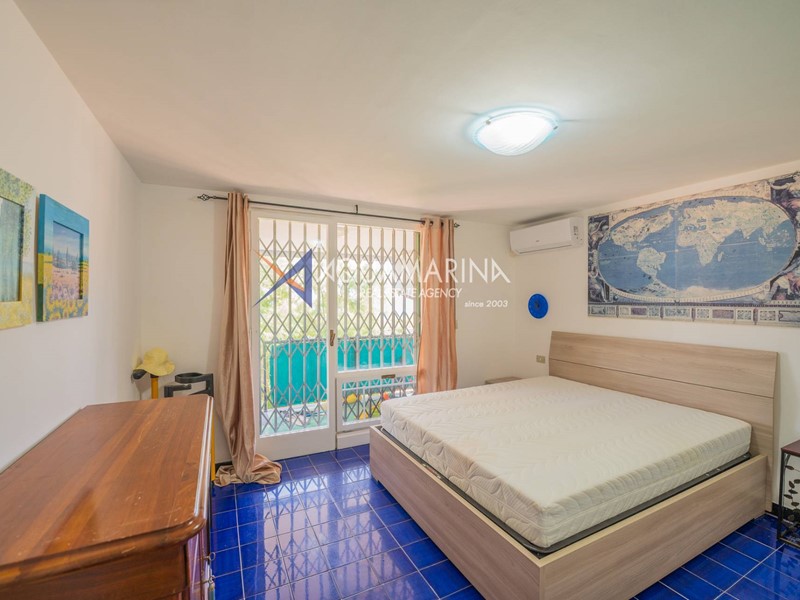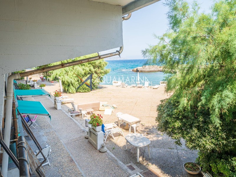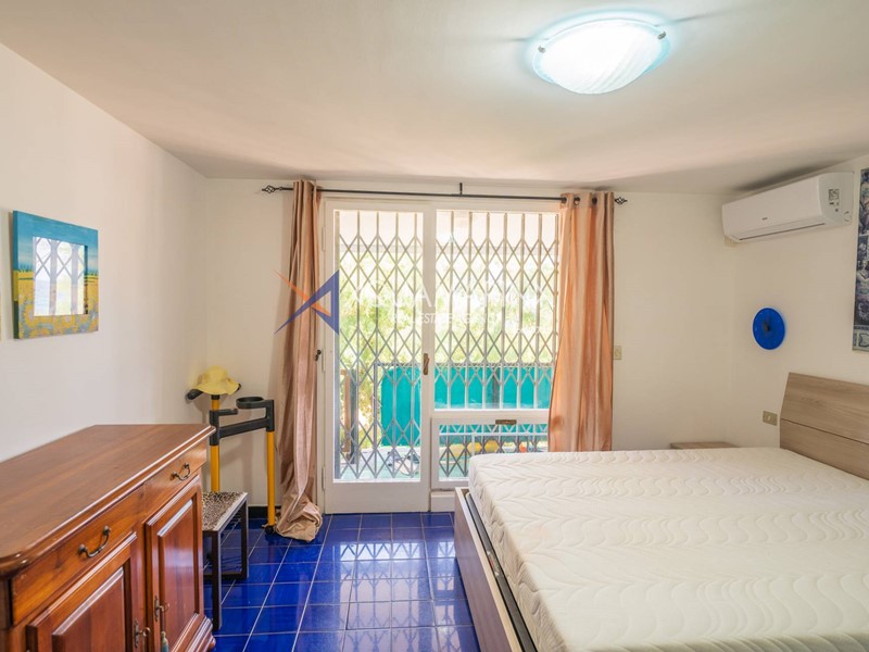 Lappartamento si sviluppa su due livelli perfettamente organizzati. Al piano superiore si trovano lingresso principale, una cucina funzionale, unampia zona giorno con spettacolare vista mare e un bagno completo. Il piano inferiore ospita una spaziosa camera matrimoniale con balcone privato e accesso diretto alla spiaggia e alle piscine condominiali, un disimpegno attrezzato con letto a castello a scomparsa e un secondo bagno.